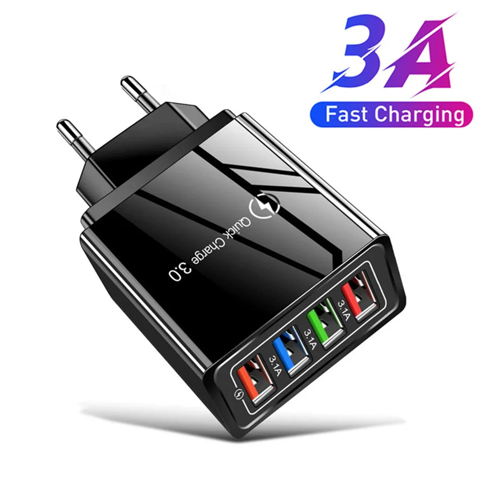 Comprar USLION-cargador USB para teléfono móvil, adaptador de pared de 4 puertos, 3A, 3,0, para iPhone 14, 13, 12, Xiaomi, Samsung, UE, EE. UU.