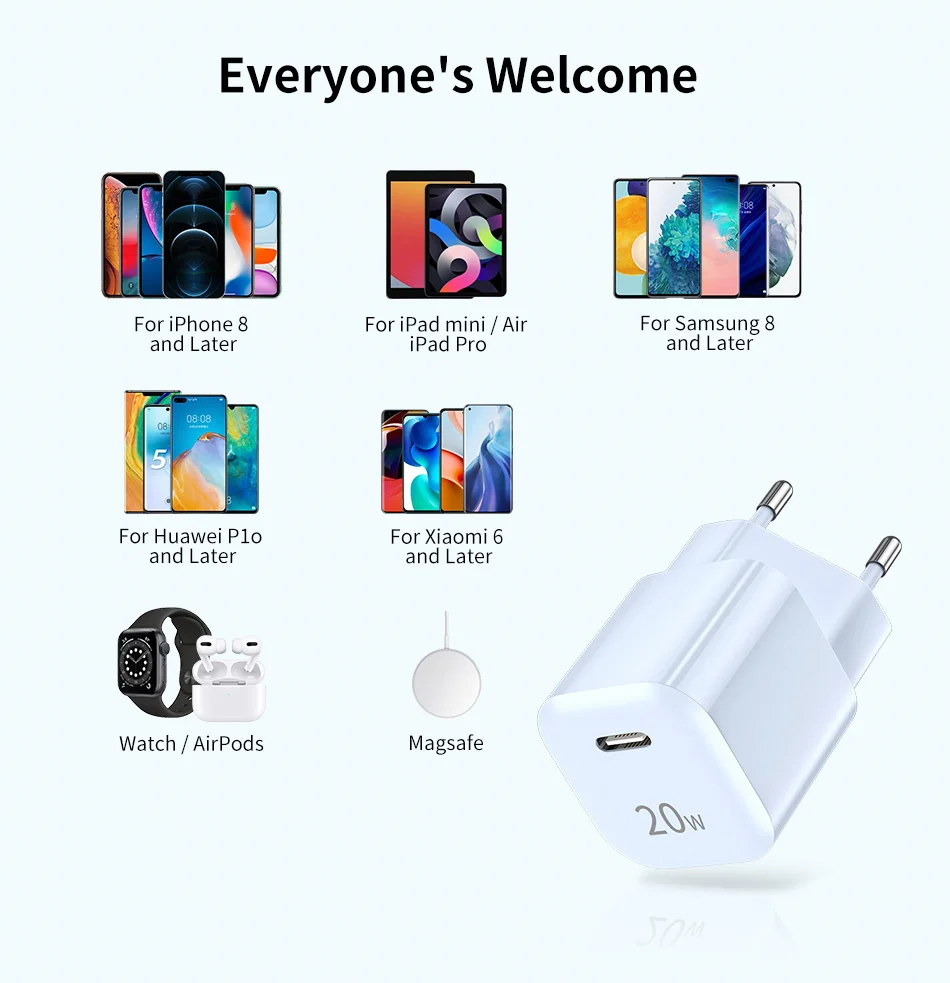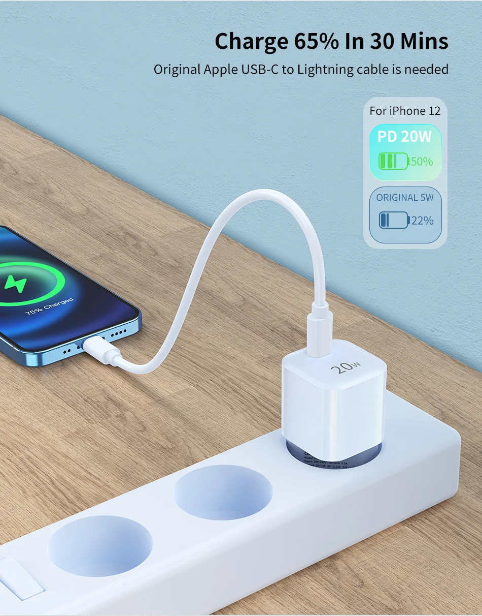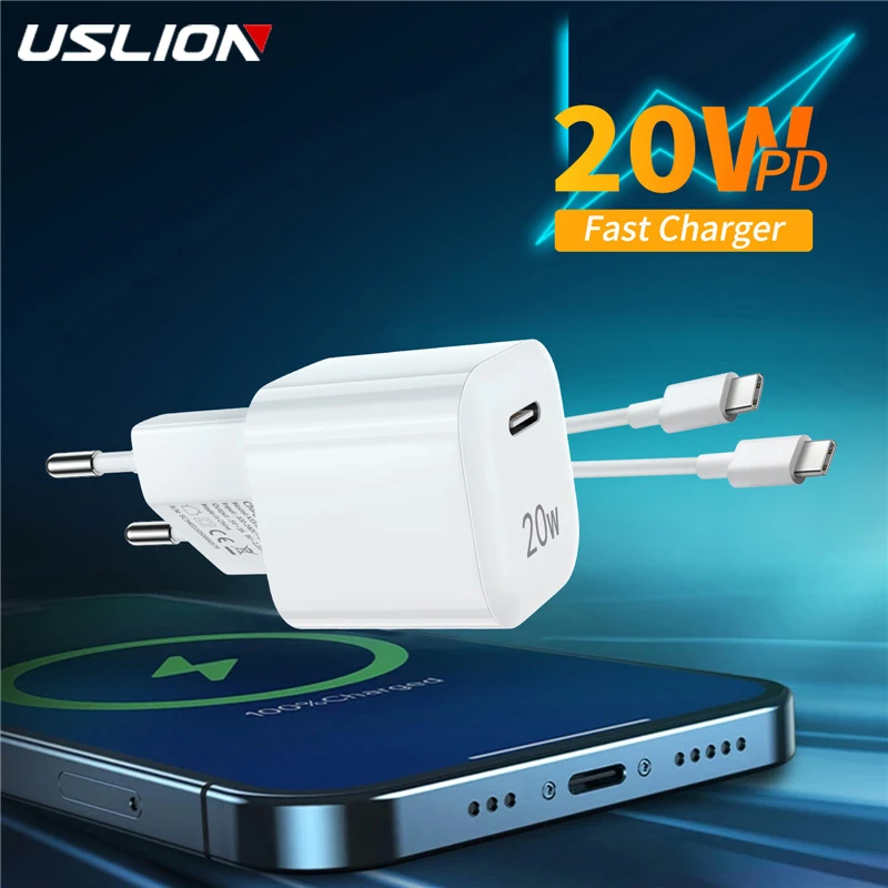 Comprar USLION-cargador USB tipo C de 20W, Mini USB tipo C, PD, 20W, carga rápida para iPhone 14, 13, 12 Pro, Max, 11, Mini, 8 Plus