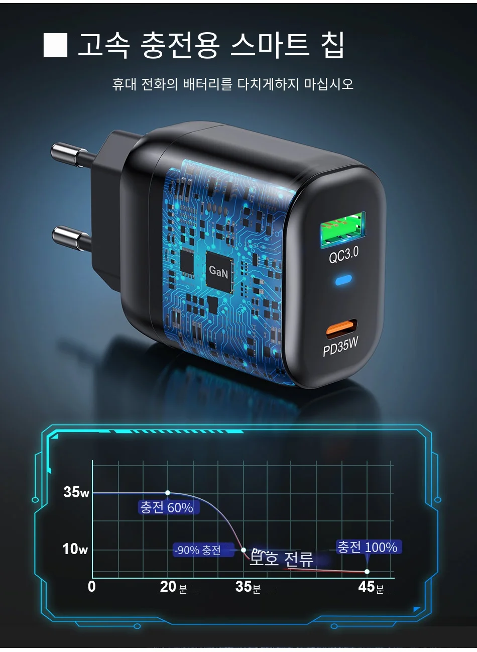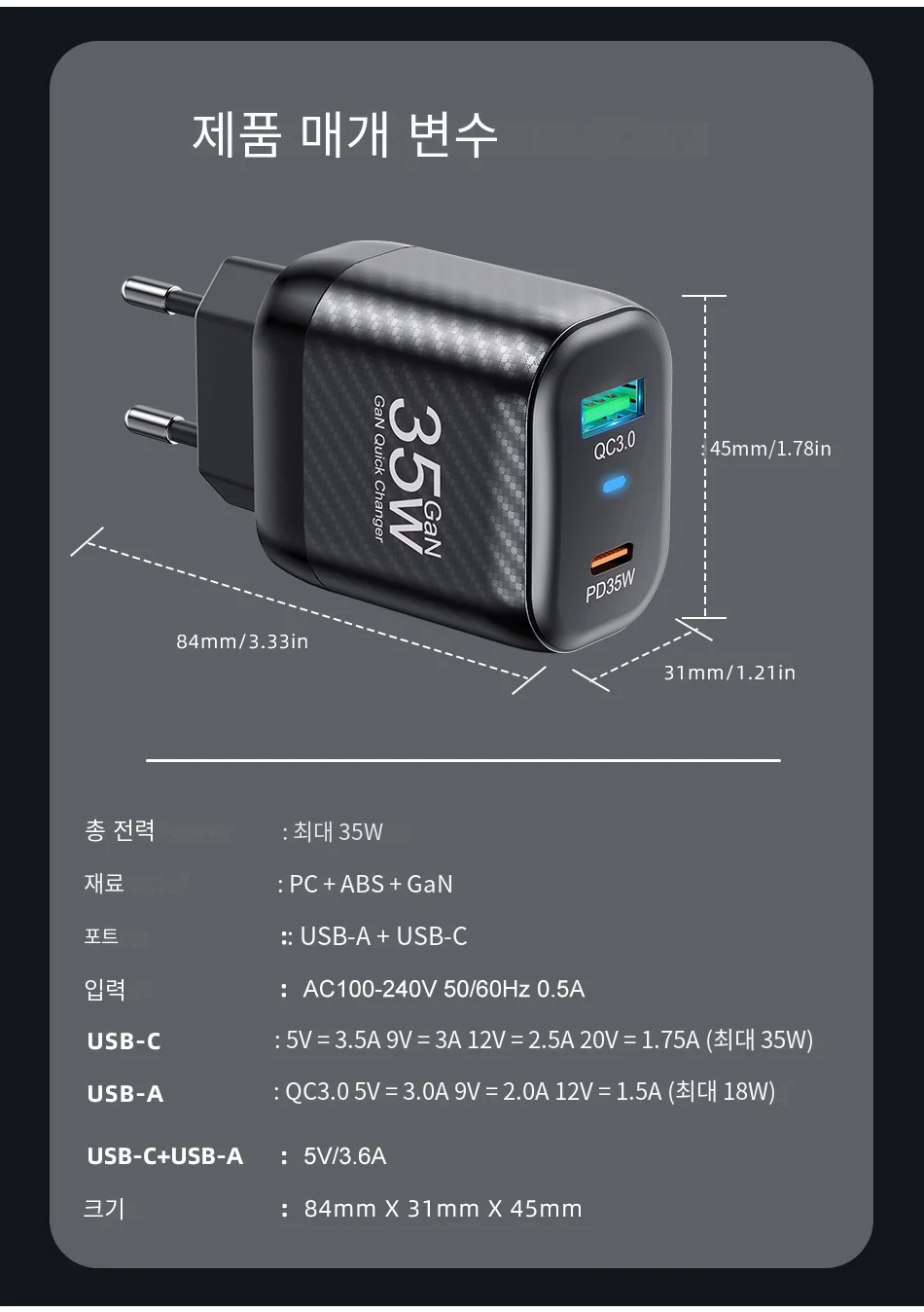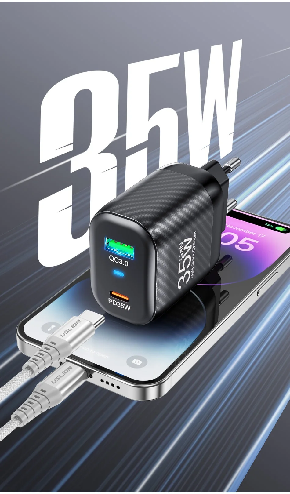 Comprar USLION-cargador USB tipo C para ordenador portátil, dispositivo de carga rápida PD, para iPhone 15 y Samsung, coreano, GaN