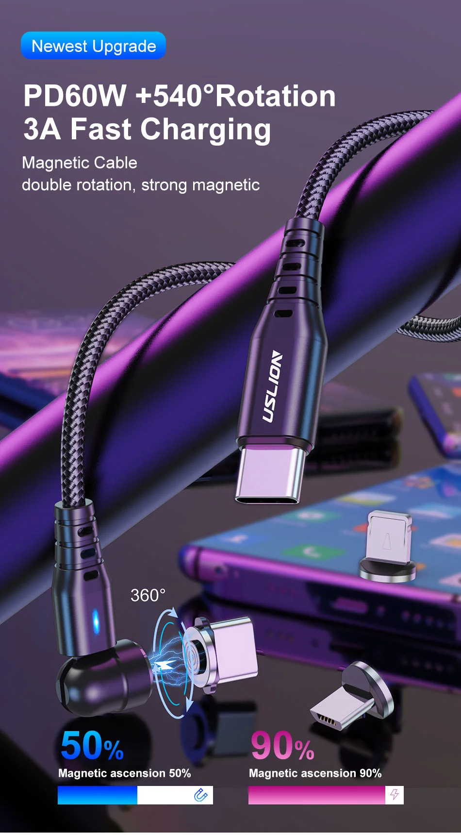 Comprar USLION-Micro Cable USB tipo C a USB C, PD, 60W, 3A, carga rápida, 4,0, 3,0, USB-C, para Macbook Pro, Samsung, Xiaomi