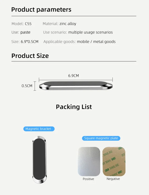 USLION-mini tira magnética para coche, soporte de pasta de teléfono para iPhone, Samsung, Xiaomi, imán de aleación de Zinc para pared, GPS, montaje para salpicadero