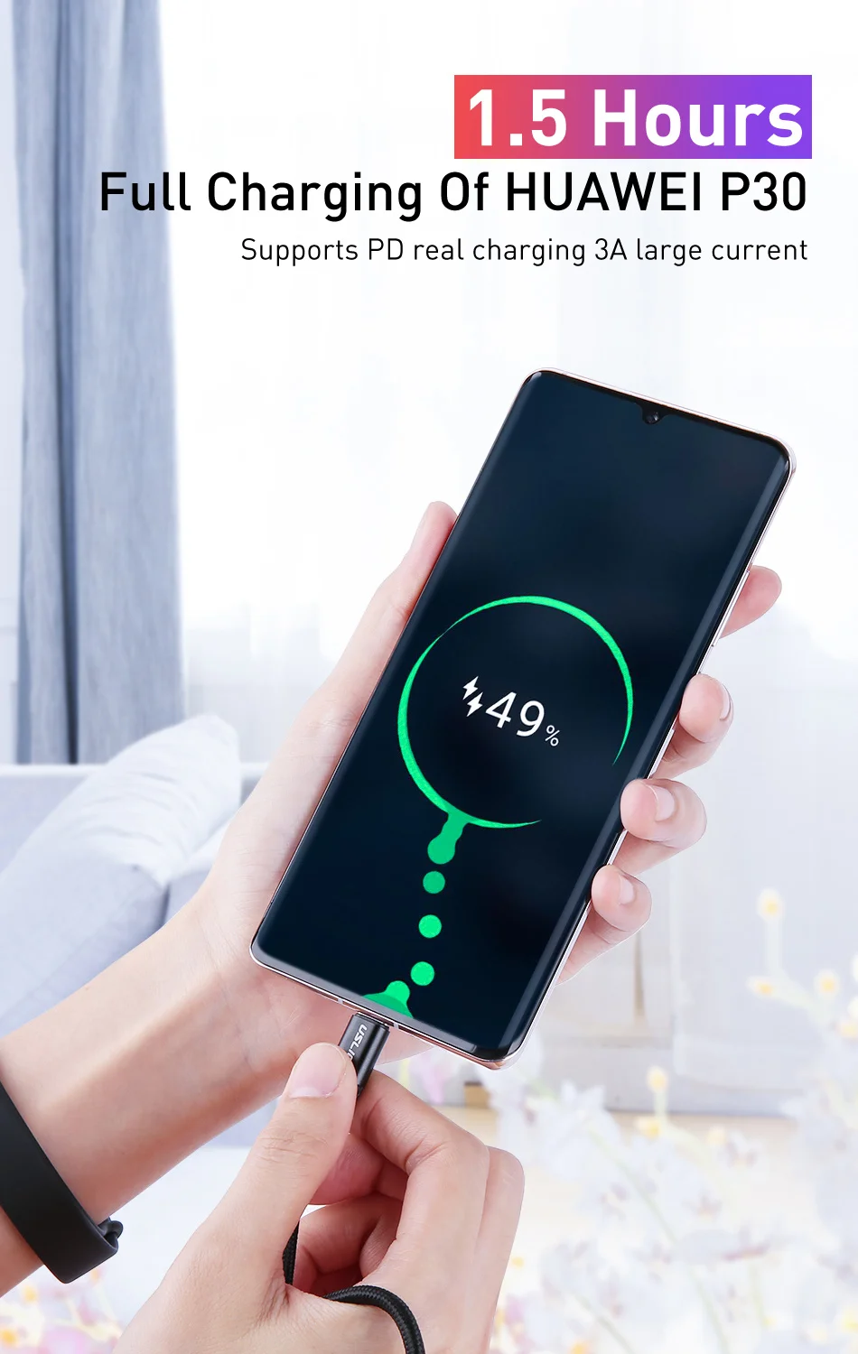 【Compatible con Cable de carga de Flash PD 60W QC 3,0 cargador rápido tipo C a Wires】