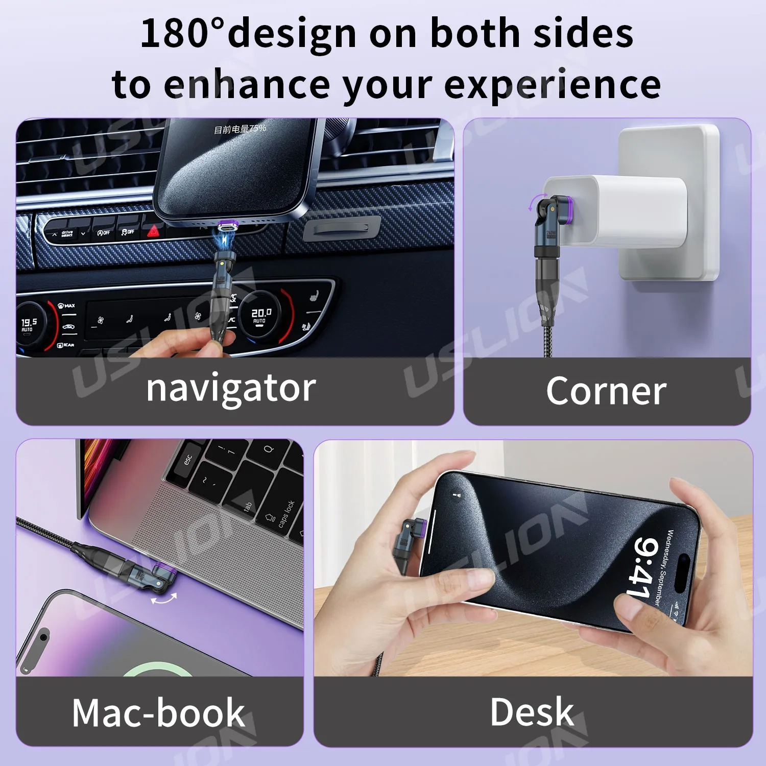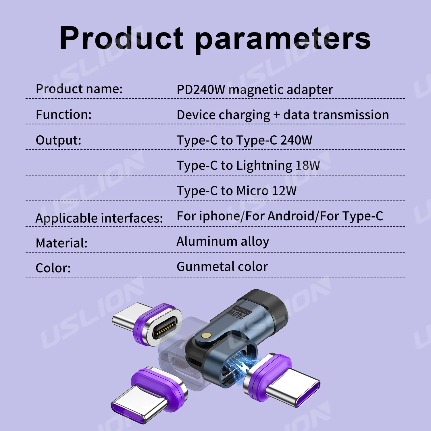 Nombre del producto:Adaptador giratorio de 180 grados de 240 W, convertidor tipo C, carga rápida y conector de datos