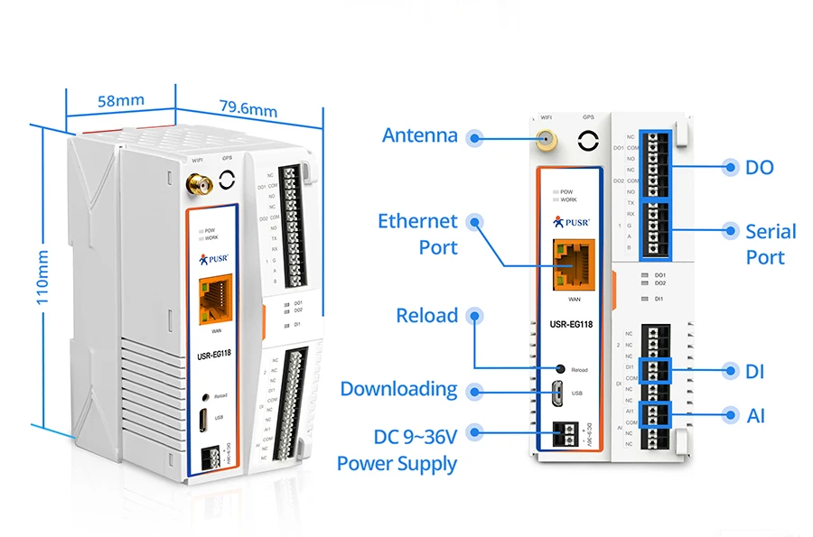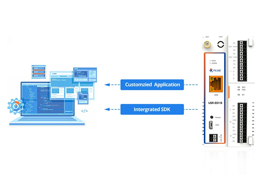 USR-EG118 Arduino Puerta de enlace IoT de código abierto ESP32 Chipset C Idioma SDK Desarrollo IDE Arduino con 1 * puerto serie RS485/RS232