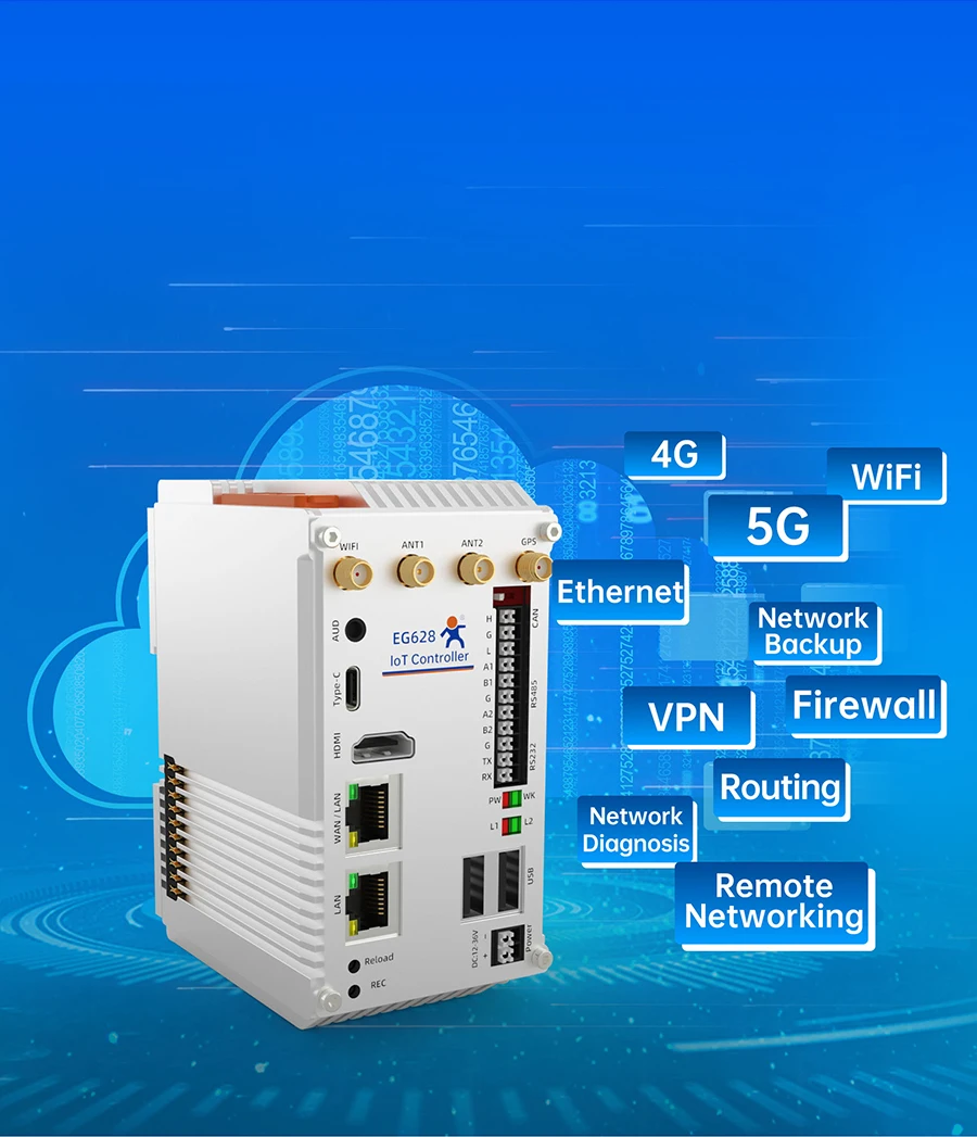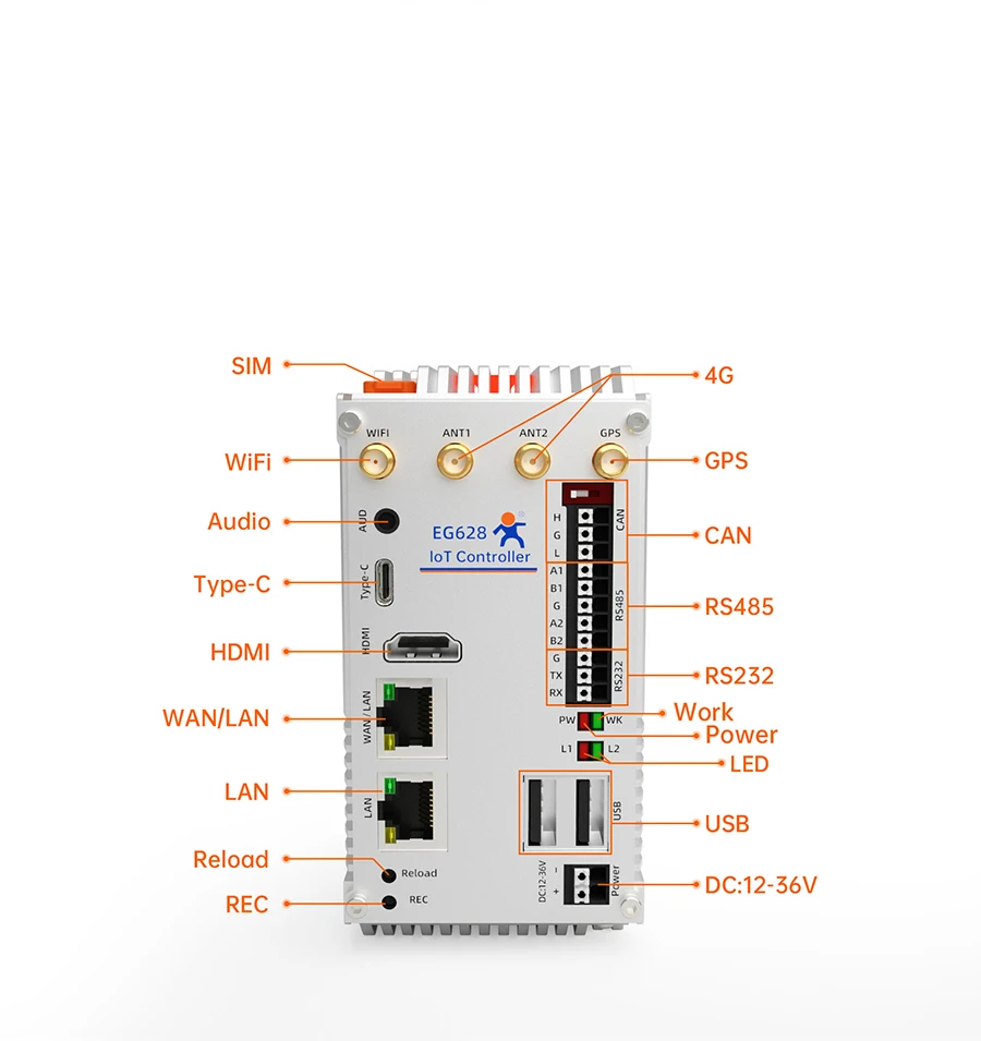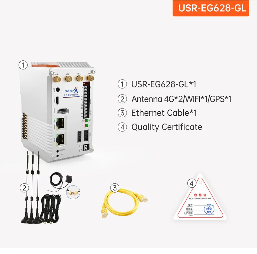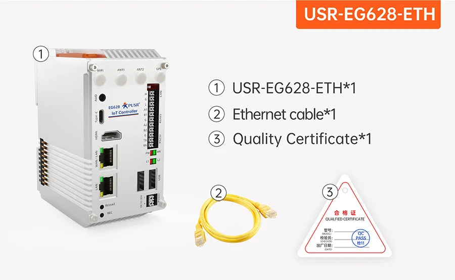 USR-EG628-ETH Controlador de IoT expandible Mini computadora industrial para PC con CPU ARM de 64 bits de cuatro núcleos de 2,0 GHz que admite expansión IO