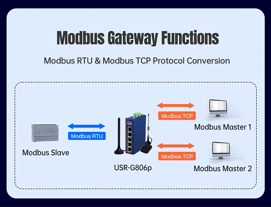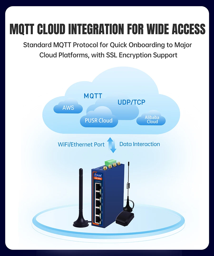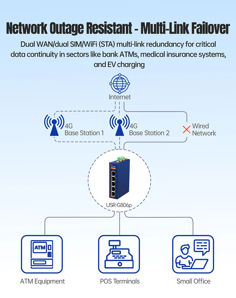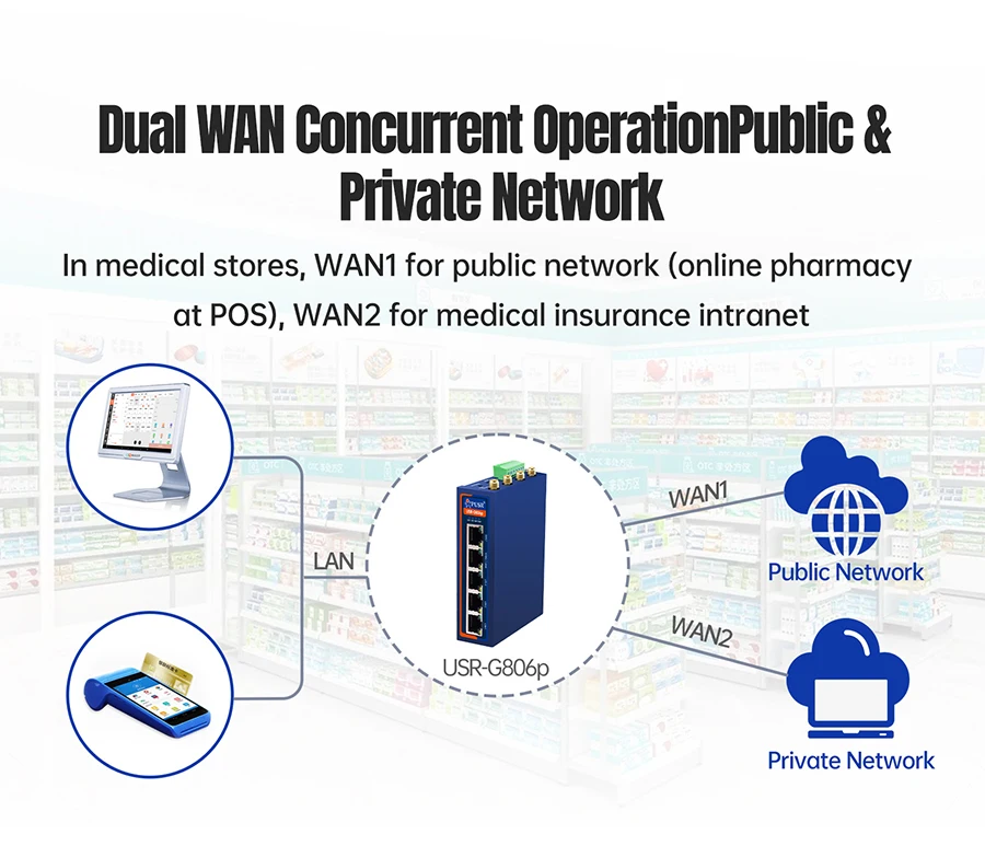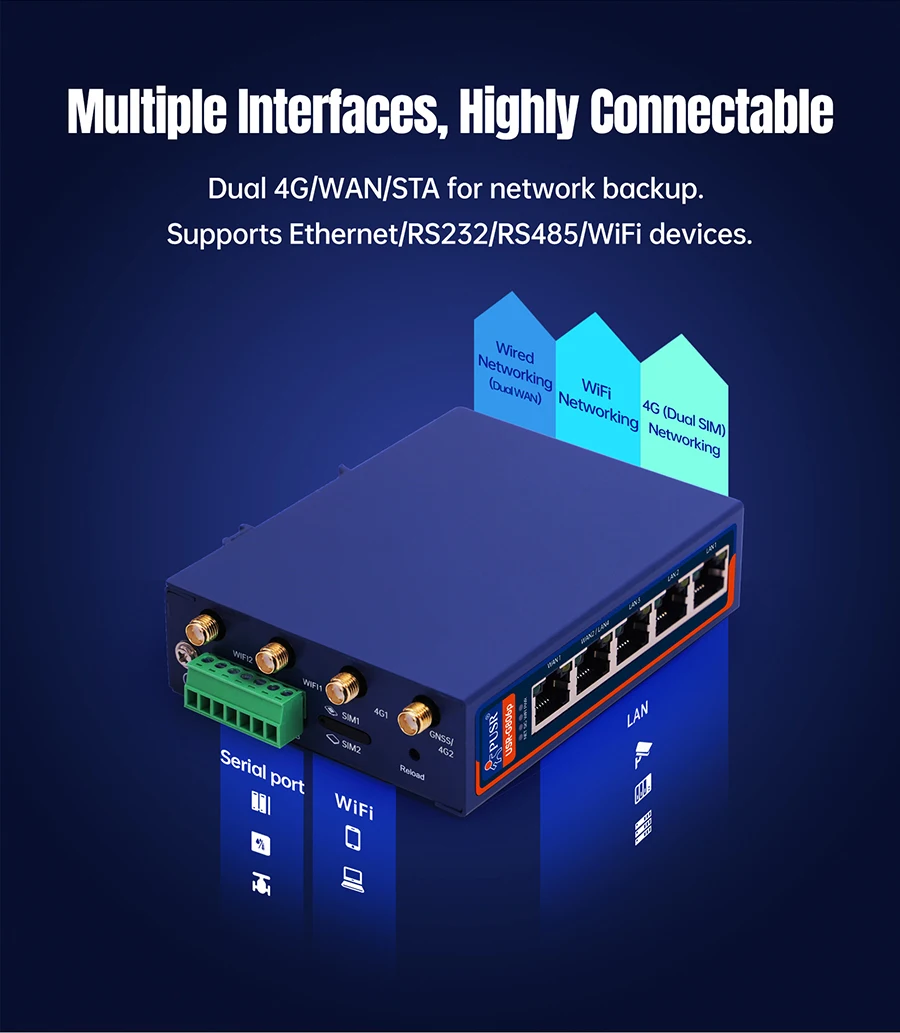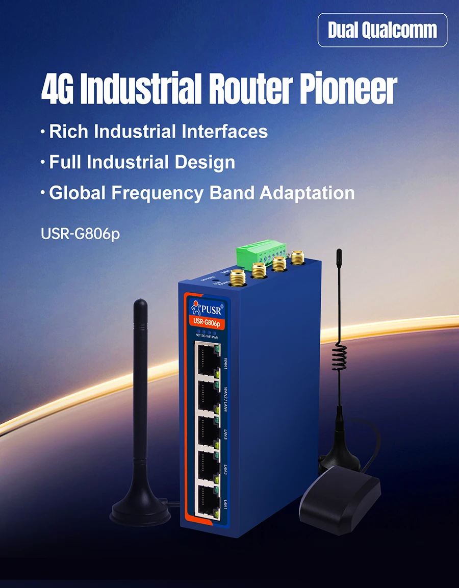 Enrutador Wifi industrial con módulo celular 4G mejorado USR-G806p con puerto serie dual RS232+RS485/5xnetwork-1 WAN+1WAN/LAN+3LAN