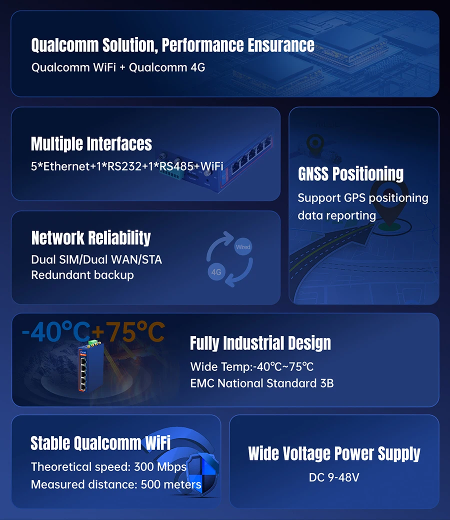 Solución de CPU de alta gama Compatible con Qualcomm.Integra 5 puertos de red