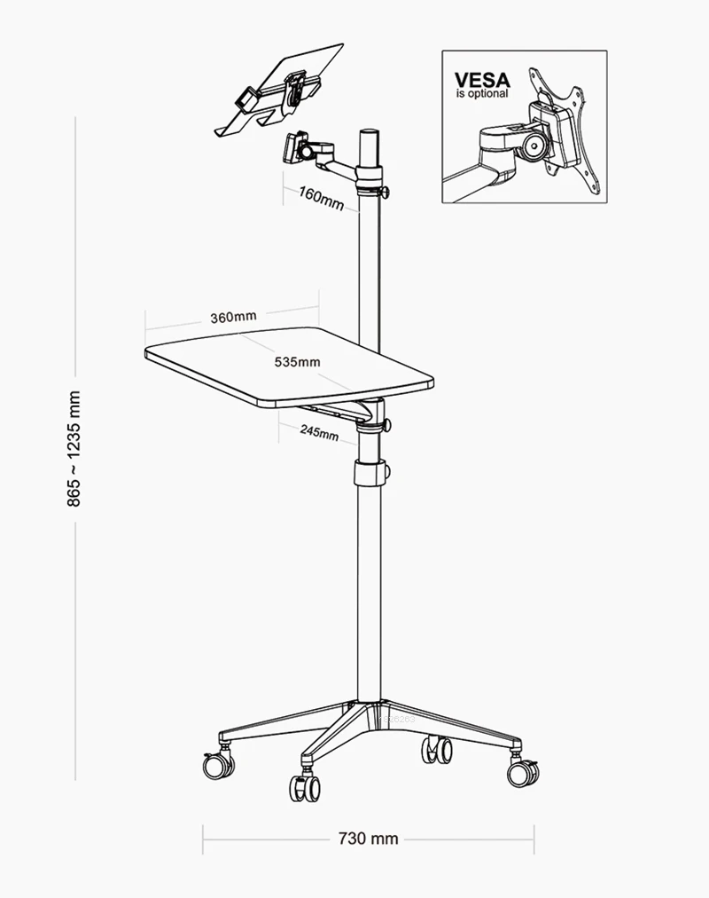 Soporte de piso para computadora multifunción 2 en 1 UT-2 + escritorio para computadora portátil con ajuste de altura