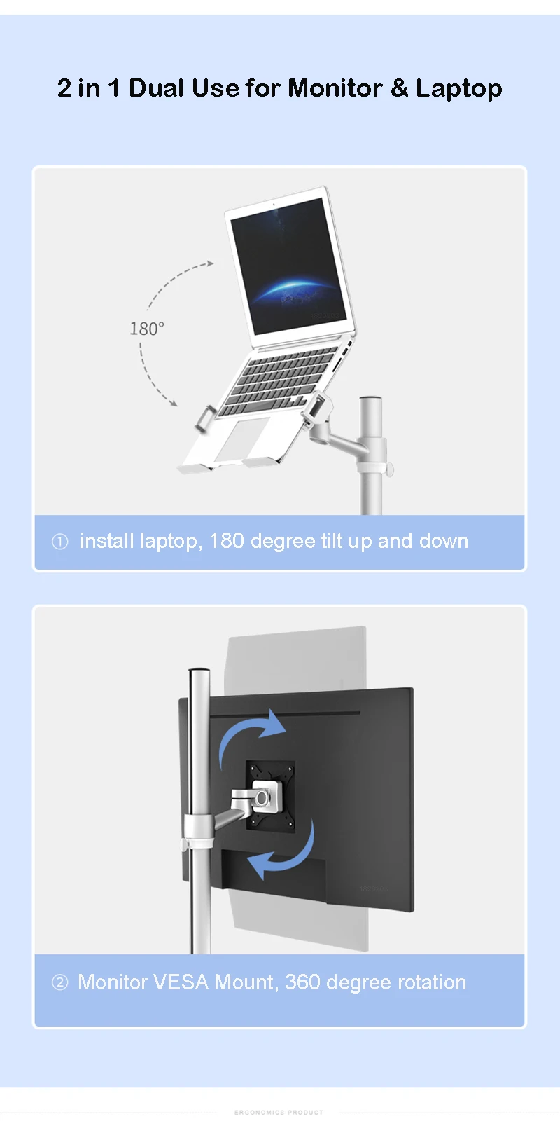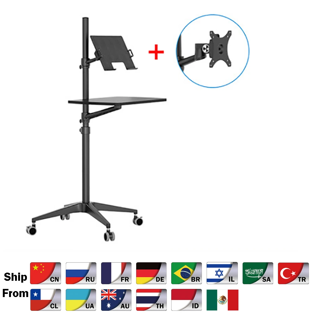 Comprar UT-2 ergonómico de movimiento completo 2 en 1 soporte de suelo para ordenador portátil Monitor soporte para teclado ajuste de altura escritorio móvil para ordenador portátil Oficina en casa
