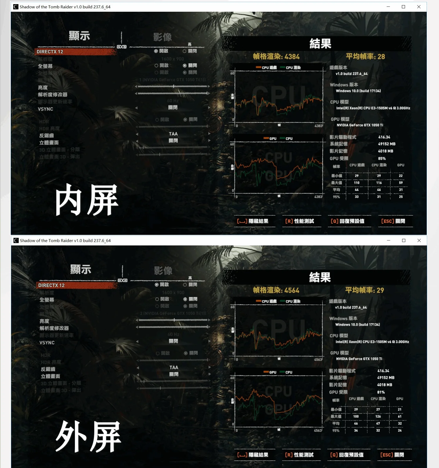 Only laptops with unique display function can support it. The measured internal screen loss is about 5%, and the comparison between internal and external screen tests is shown in the following figure.