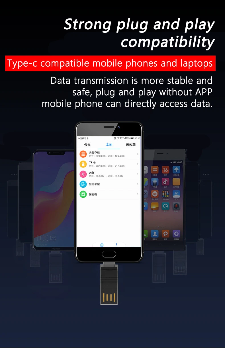 2. Probado, la interfaz tipo C es totalmente compatible con los últimos Macbook, LTV, Xiaomi, Nokia, Huawei, Sony, Meizu y otros teléfonos y ordenadores con interfaz tipo C.