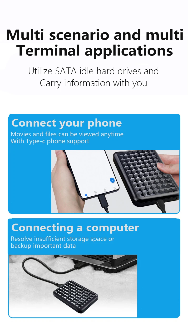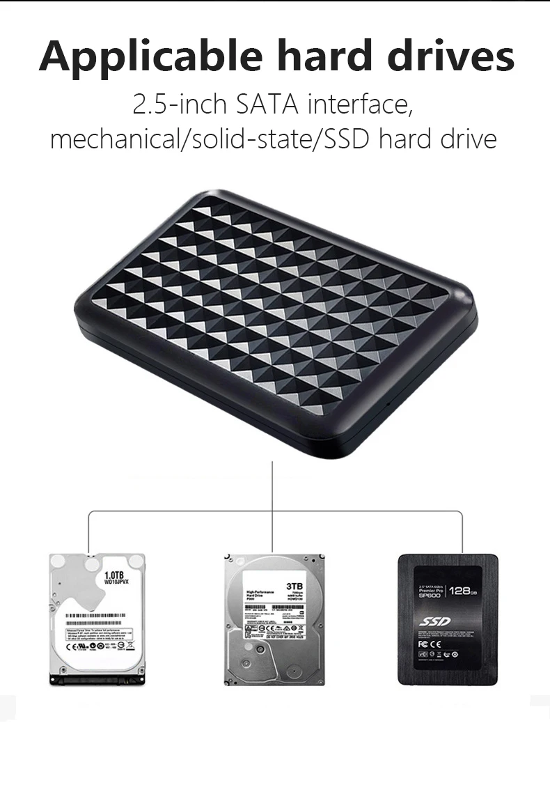 Nombre del producto: Caja de dispositivo de almacenamiento portátil SATA de 2,5 C pulgadas