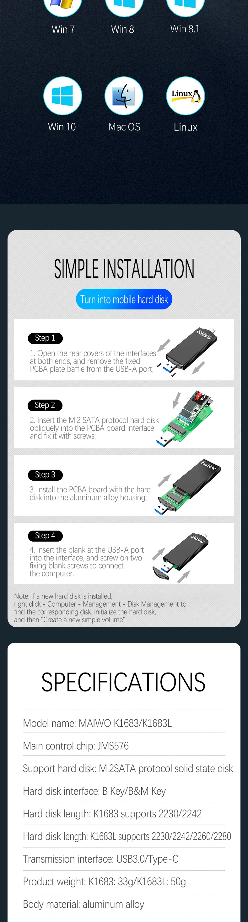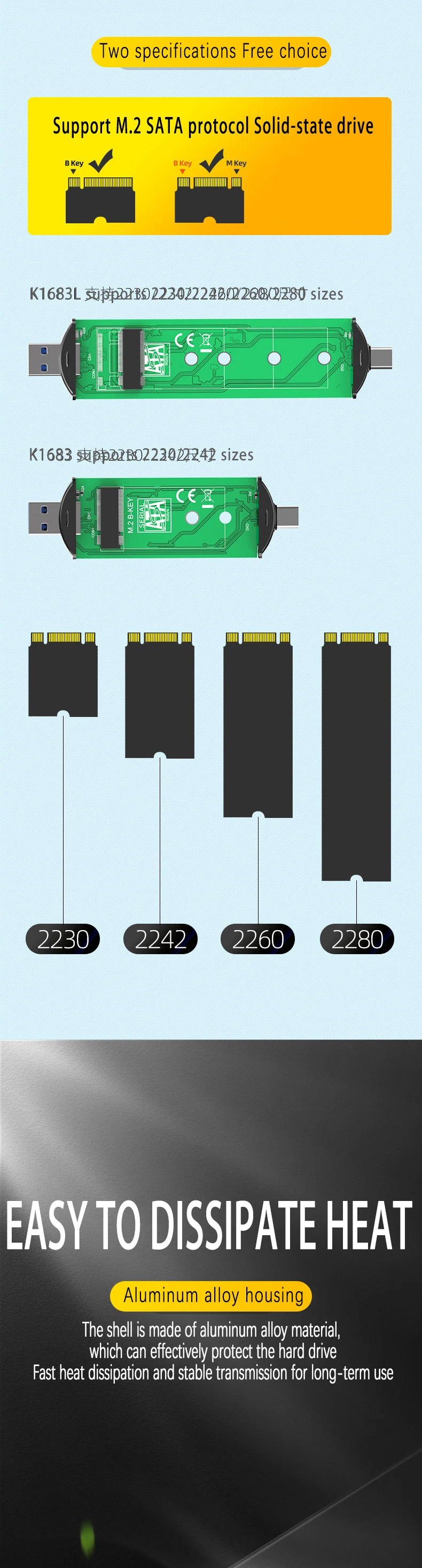 Comprar UTHAI-caja de unidad de estado sólido M.2 SATA, carcasa de aleación de aluminio, transmisión de Chip JMS576, interfaz Dual en línea, K1683 USB/tipo C, 1G en 3s