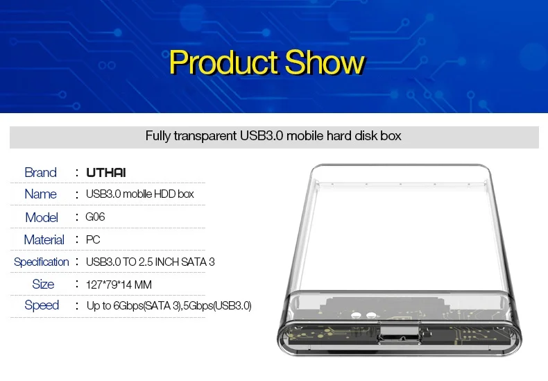 • Marca UTHAI :Fabricado por UTHAI, una marca conocida por su compromiso con la calidad y la innovación en el campo de las cajas de disco duro.