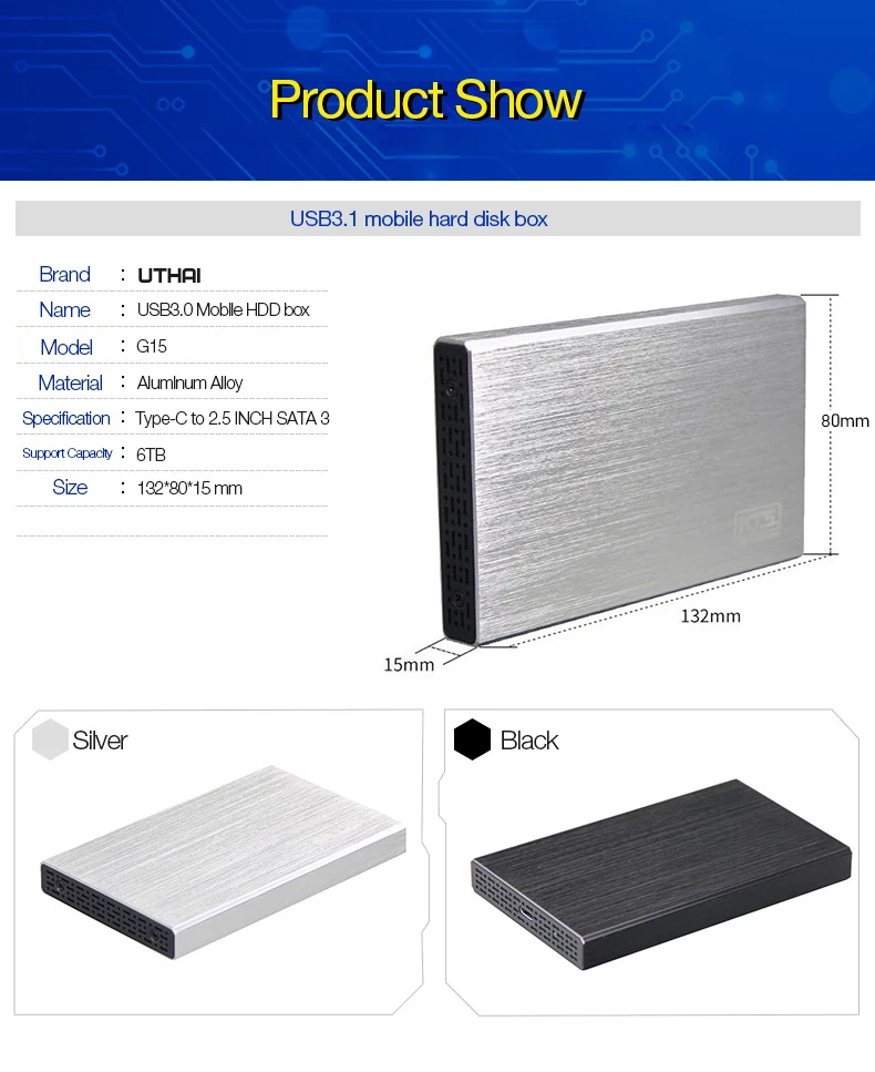 Comprar UTHAI-carcasa de HDD tipo C 3,1 a SATA3, caja de SSD, USB3.1, 6TB, carcasa externa HDD 2,5, adaptador USB 3,0