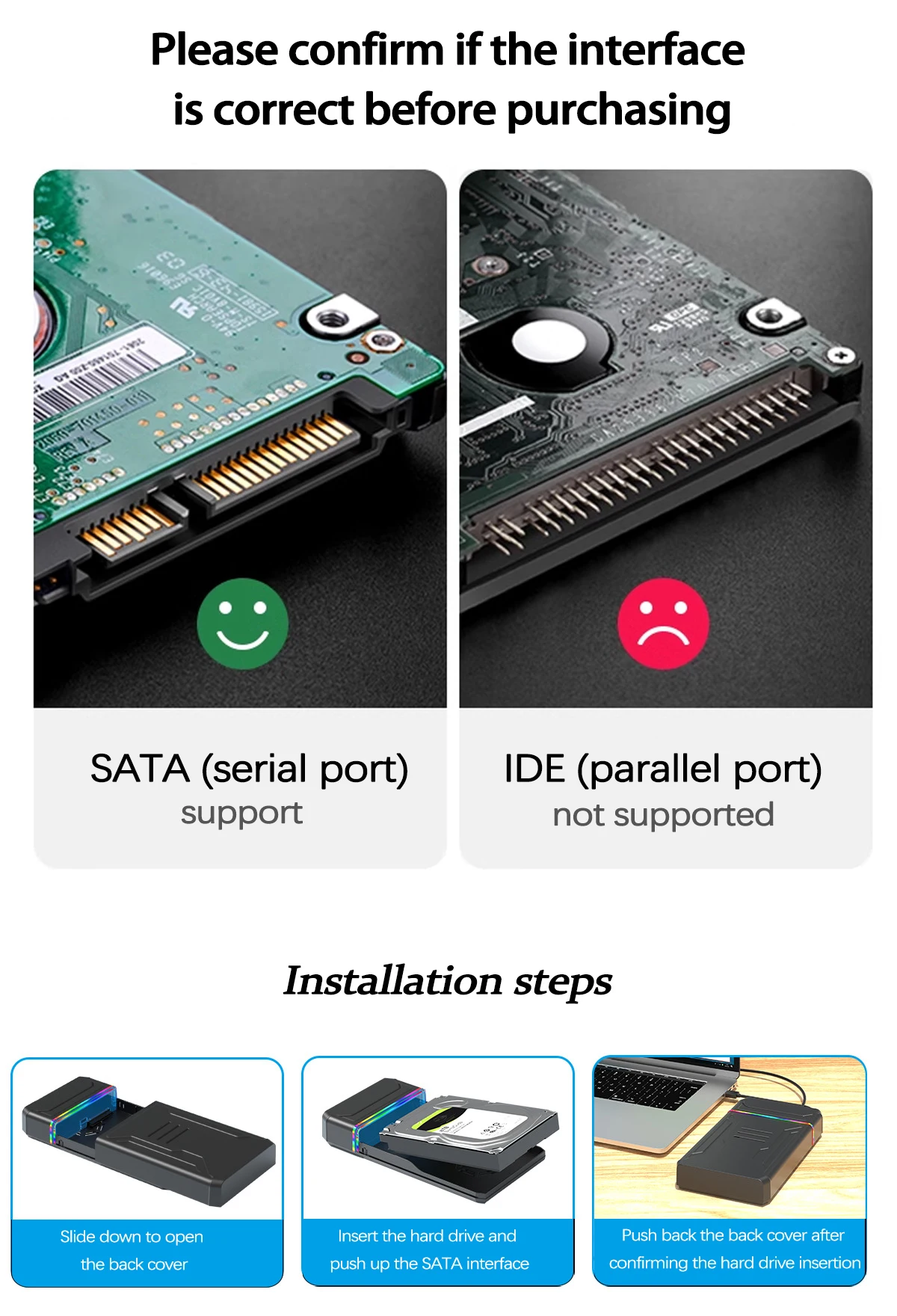 UTHAI D49 nueva caja de disco duro portátil caja externa TYPE-C de 3,5/2,5 pulgadas para disco duro externo de ordenador portátil