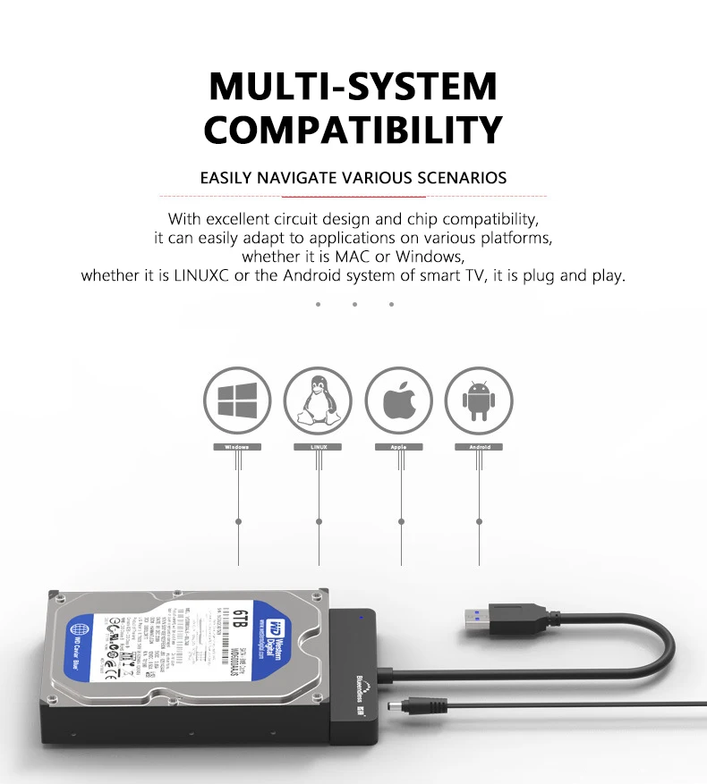 UTHAI easy drive line usb3.0 a sata portátil 2,5 pulgadas 3,5 pulgadas disco duro cable adaptador universal con fuente de alimentación