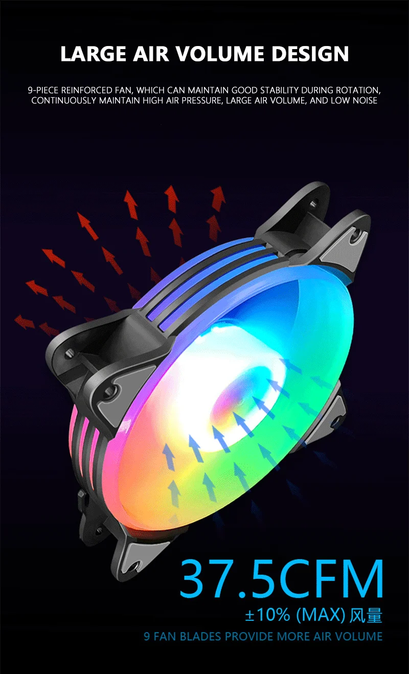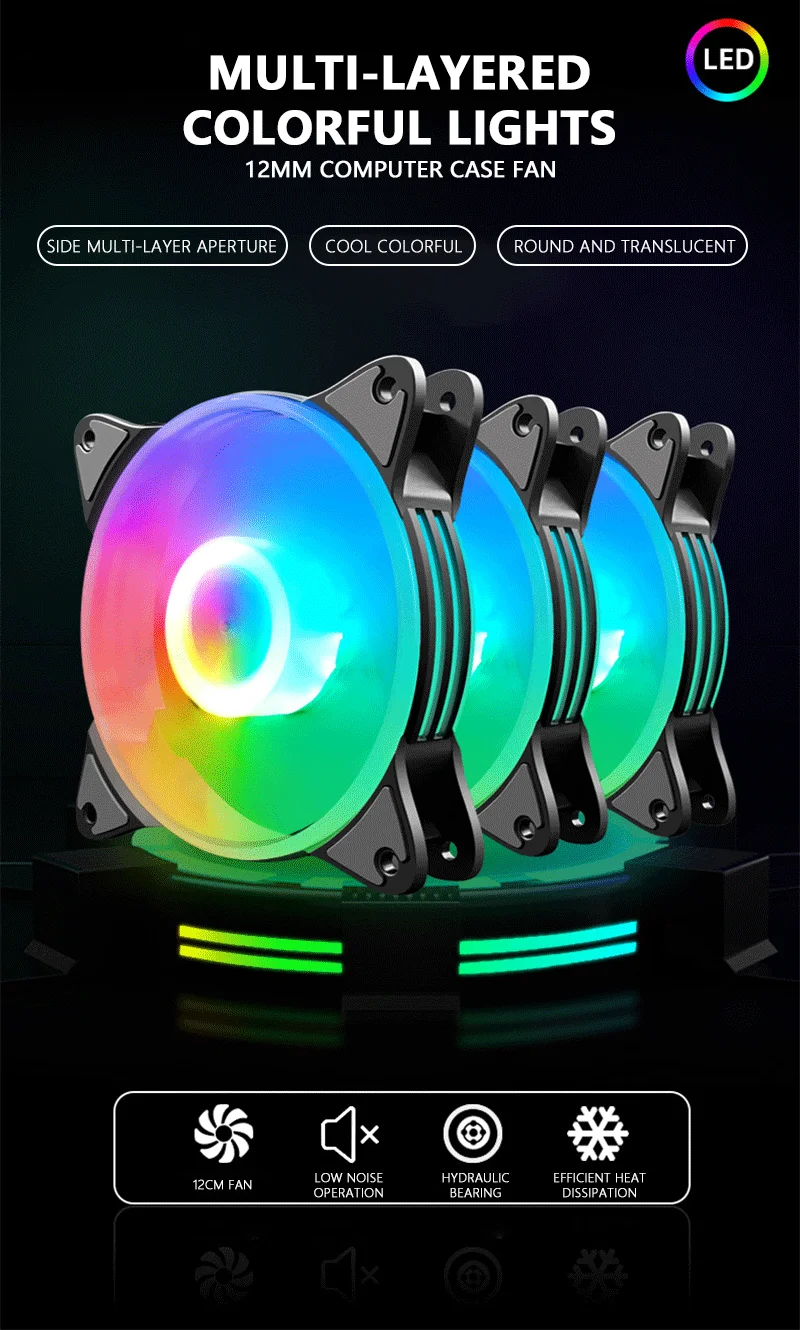 UTHAI FS-5C ventilador de chasis de 12CM silencioso iluminación colorida multicapa ventilador de refrigeración de computadora de escritorio LED