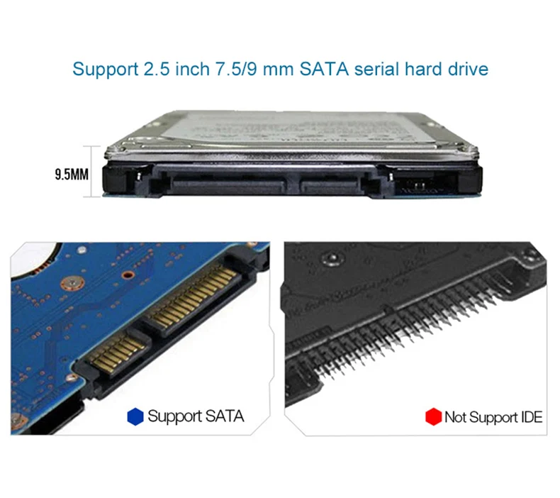 4. No sugerimos la conexión con un disco duro de 12,5 mm, la cubierta deslizante no se puede cerrar en este caso.