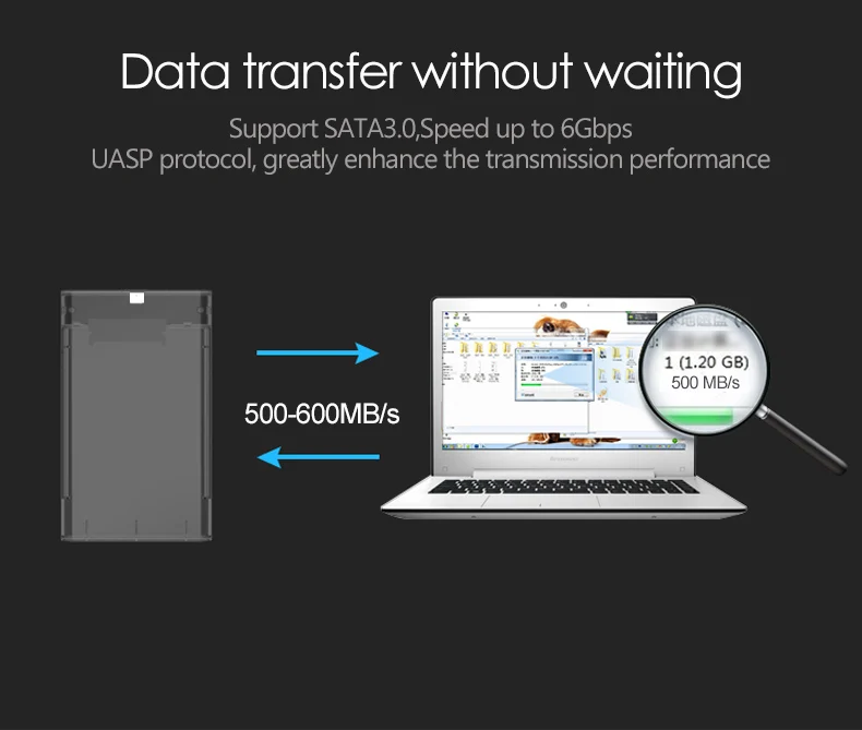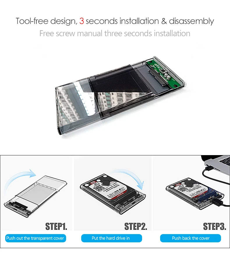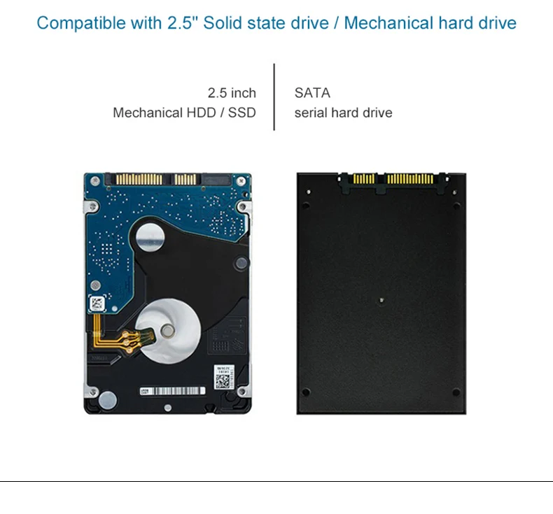 Ofrece una transmisión de datos rápida y protege el disco duro contra rasguños, una manera perfecta de aprovechar al máximo sus discos duros inactivos. 【Nota: Este artículo es solo un estuche para HDD, el disco duro no está incluido.】