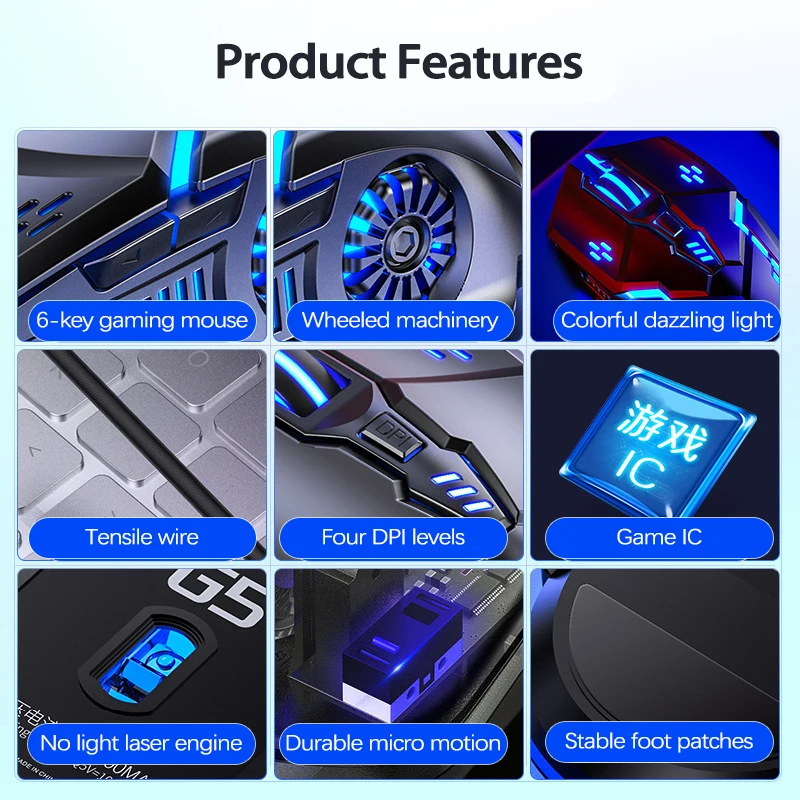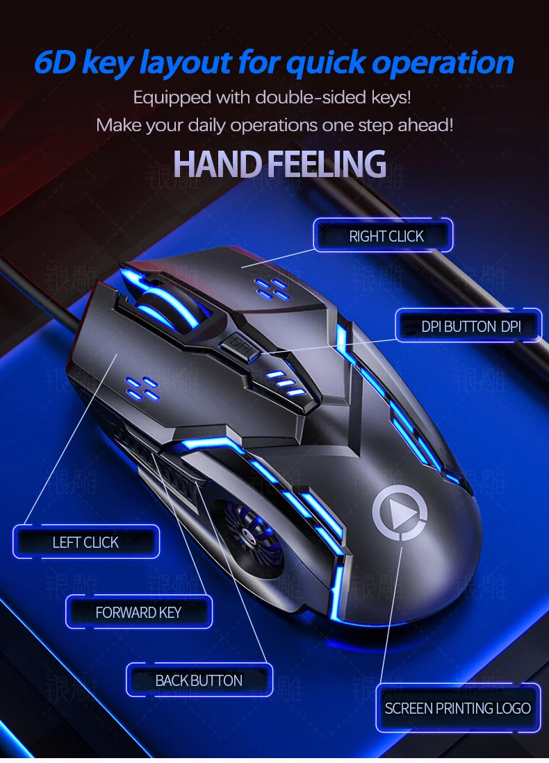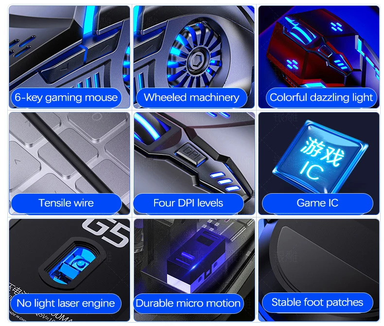 Comprar UTHAI G5 Ratón para juegos iluminado con cable 3200PDI de seis teclas, accesorios de computadora silenciosos mecánicos e-sports