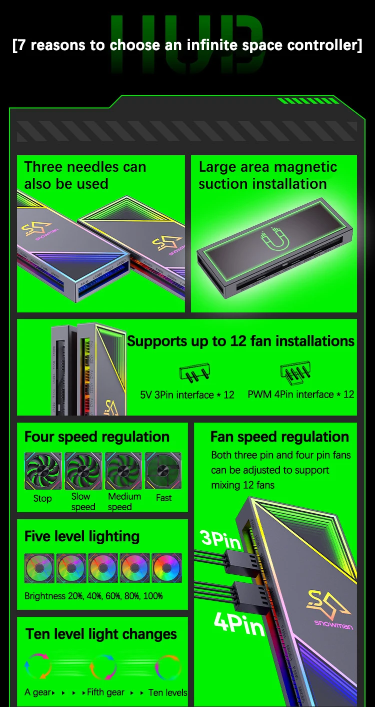 UTHAI H12 nuevo controlador ARGB 5V3 Pin Shenguang caja de ordenador síncrona ventilador de prisma PWM Control de temperatura Hub