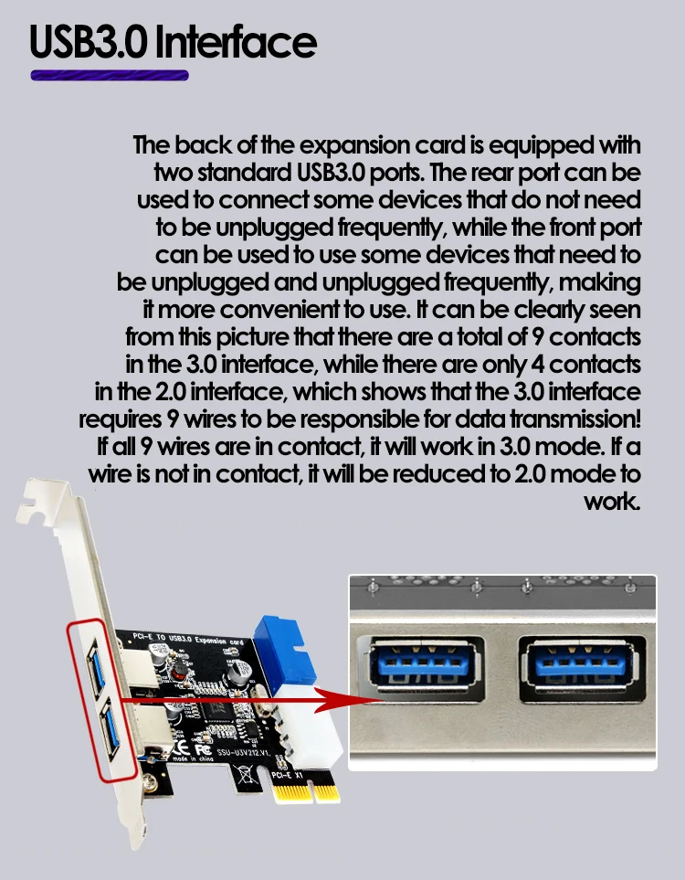 UTHAI V212 Dual Interface USB3.0 High-speed Transmission Add On Card PCI-E To USB3.0 Computer Component Adapter Expansion Card