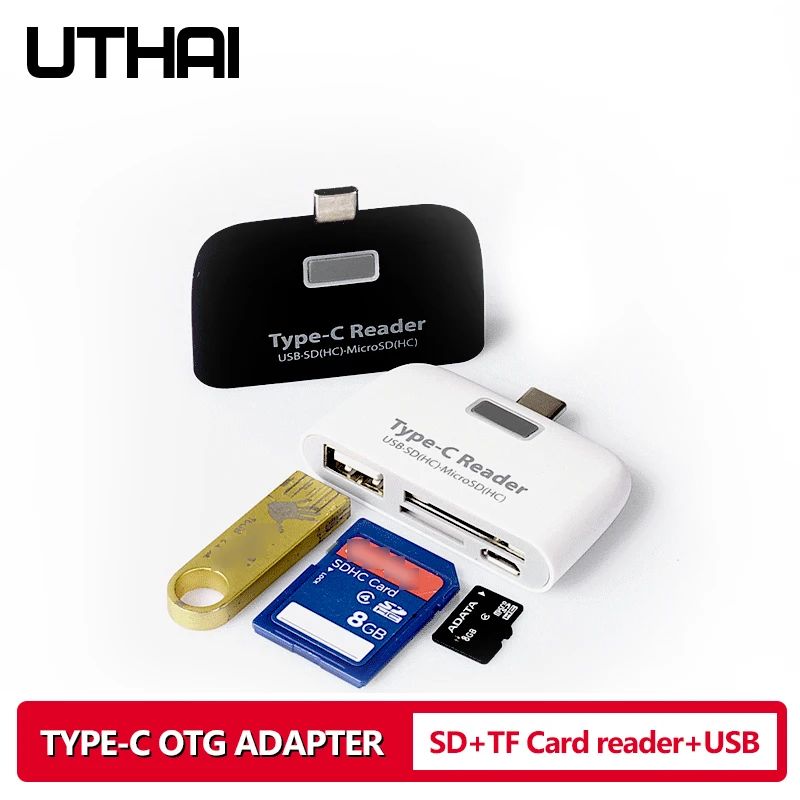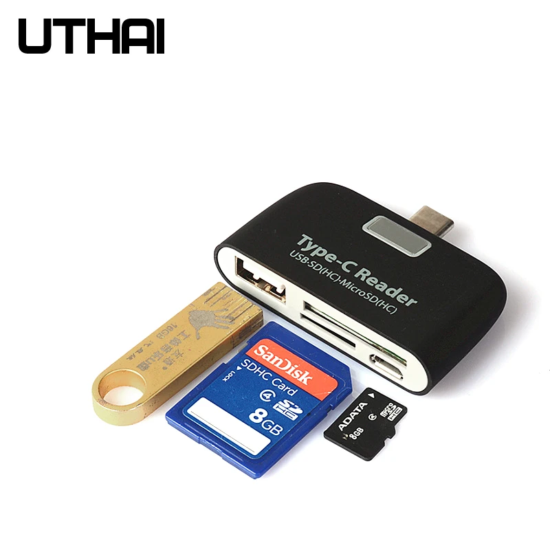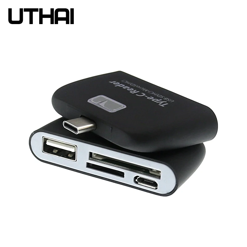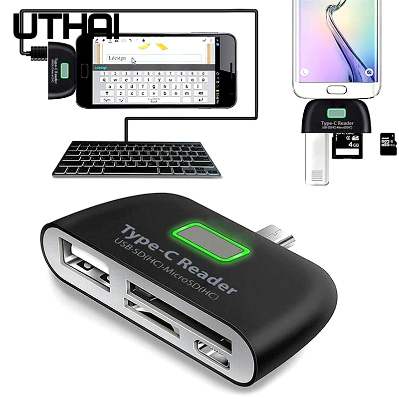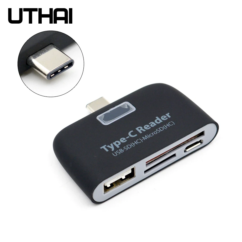Comprar UTHAI J08 tipo C USB3.1 lector de tarjetas múltiples para SD TF USB2.0 lectores de tarjetas de teléfonos Android luces LED adaptador USB OTG para ratón
