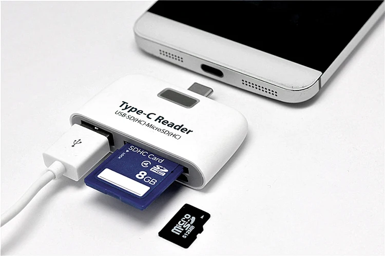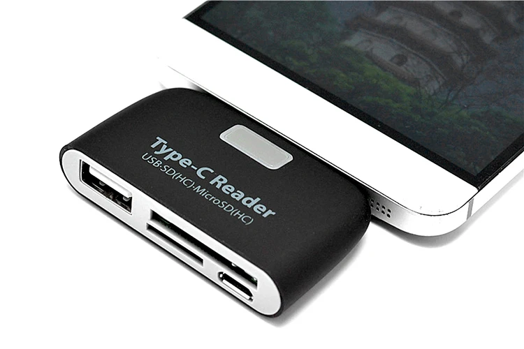 Características del producto: lector de tarjetas USB 3,1 tipo C a USB 2,0 y HUB, compatible con la función OTG, puede dejar equipo tipo C tarjeta de memoria SD / TF externa de alta velocidad, USB Puede conectar una unidad flash USB, ratón, teclado, disco duro móvil y otros dispositivos externos. La interfaz se puede insertar hacia adelante y hacia atrás es el último estándar internacional 3,1 Interfaz