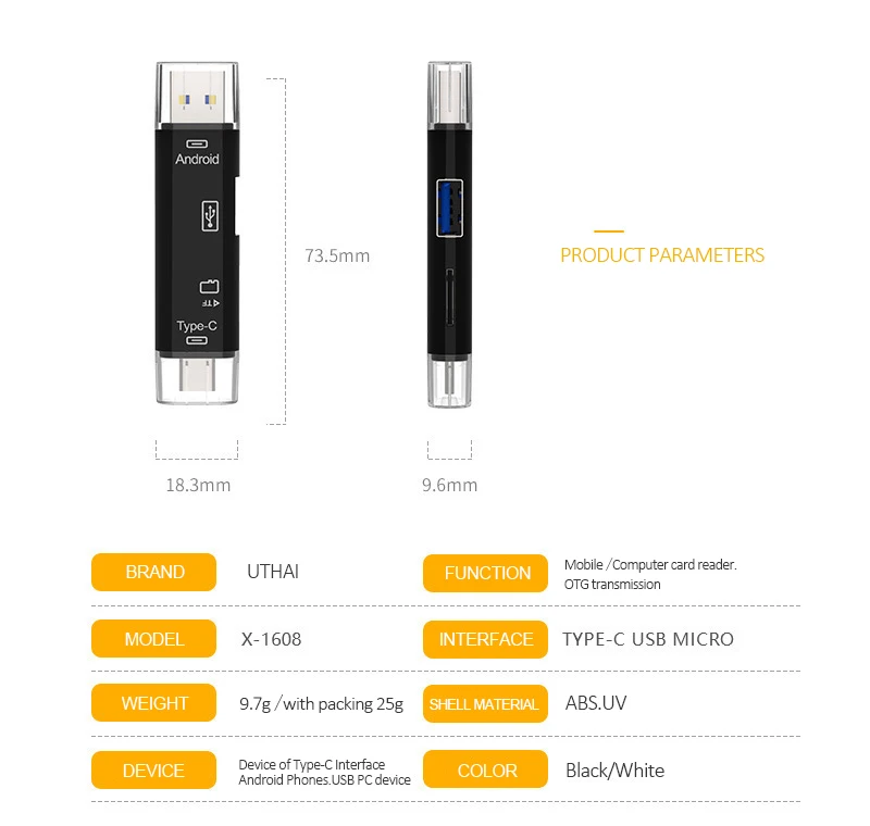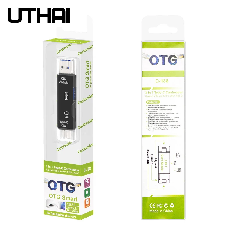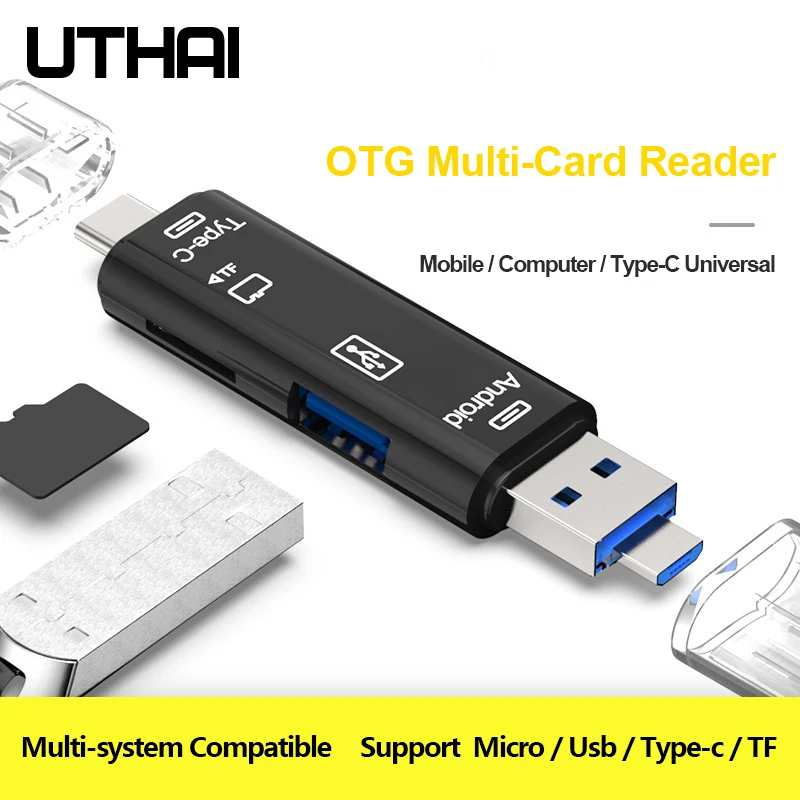 Comprar UTHAI-lector de tarjetas C01 tipo C, MicroUSB, USB 3 en 1, OTG, Universal, de alta velocidad, TF/USB, para adaptador de extensión de ordenador Android