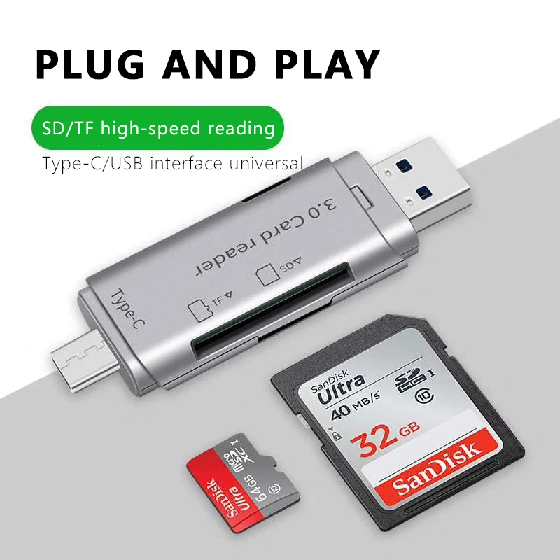 UTHAI-lector de tarjetas SF188, USB 3,0, tipo c, sd/tf, doble cabezal, multifunción, dos en uno