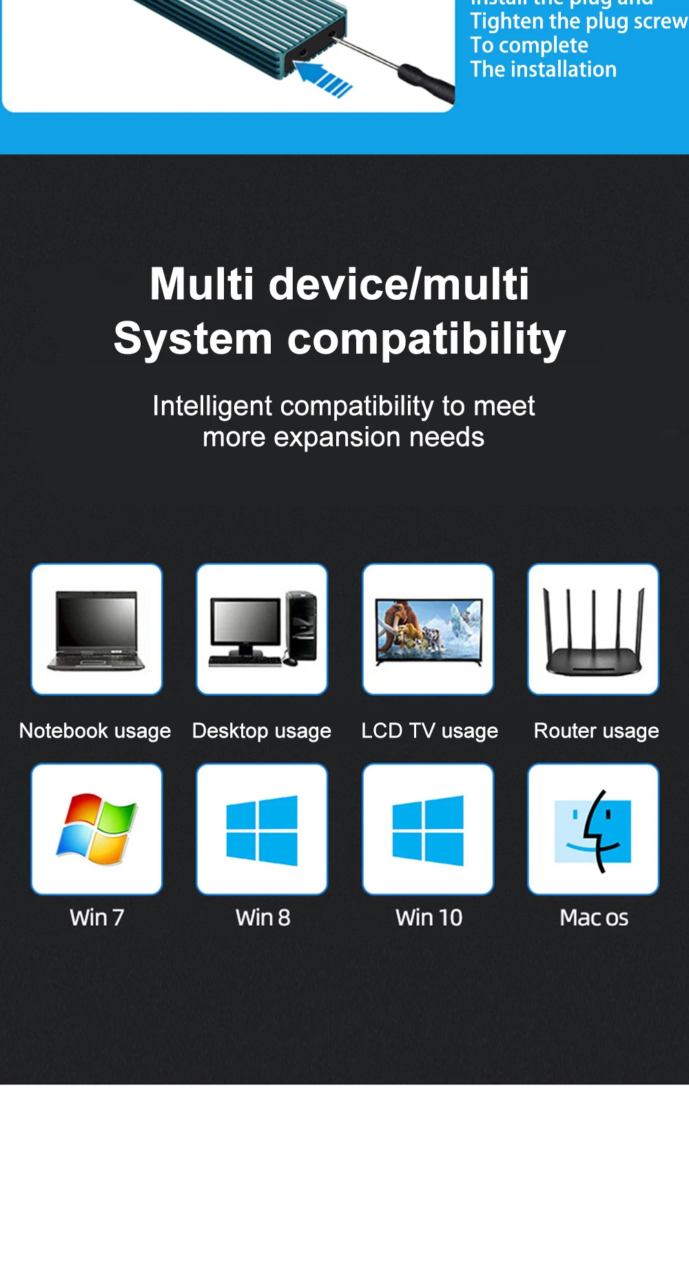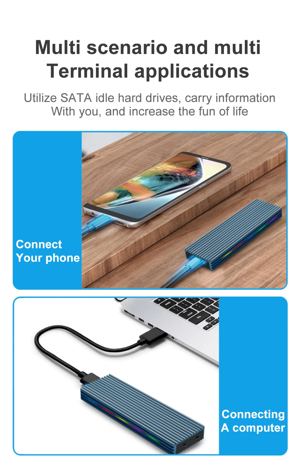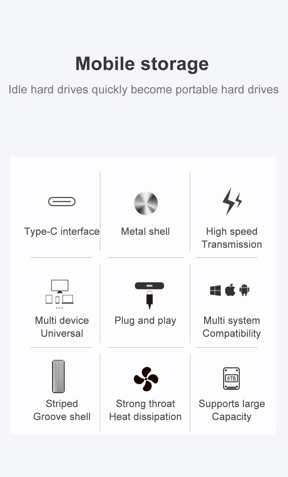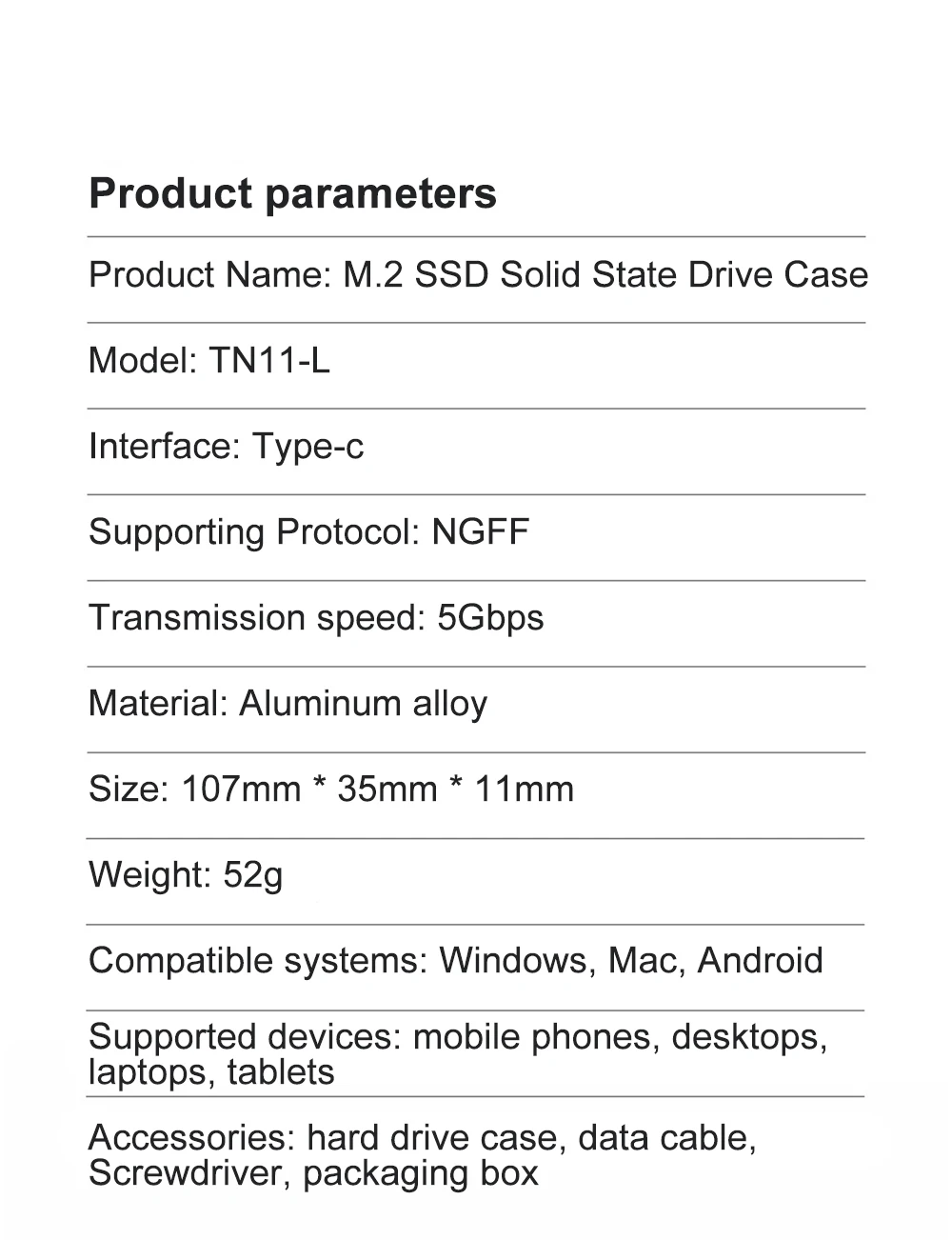 Accesorios: Caja de disco duro, cable de datos, destornillador, caja de embalaje