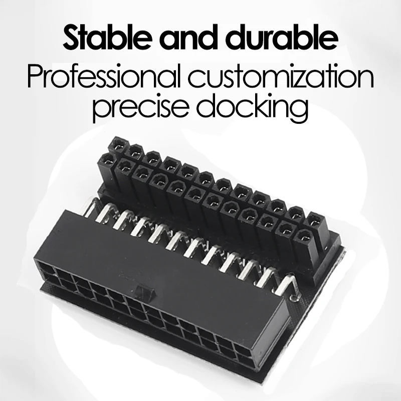 Ventajas: Interfaz de conector de alimentación ATX dedicada investigada y desarrollada profesionalmente, resistente y Duradera; el PCBA grueso puede transportar una corriente excesiva; la soldadura SMT respetuosa con el medio ambiente sin plomo es firme; el EVA grueso aislante no conductor se pega en la parte posterior para proteger las juntas de soldadura y garantizar la seguridad del cableado en el chasis.