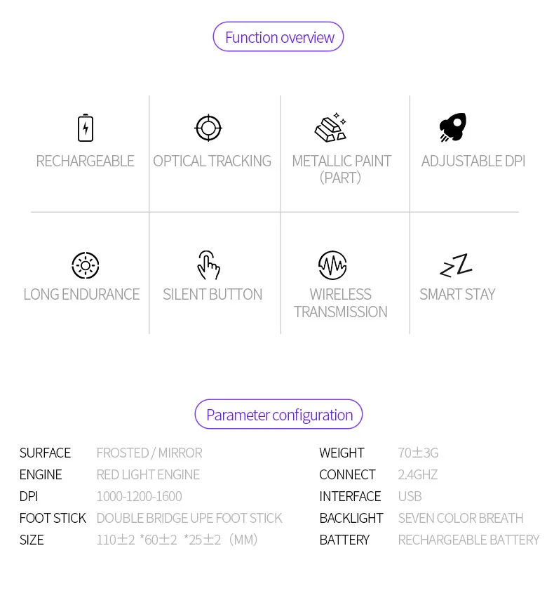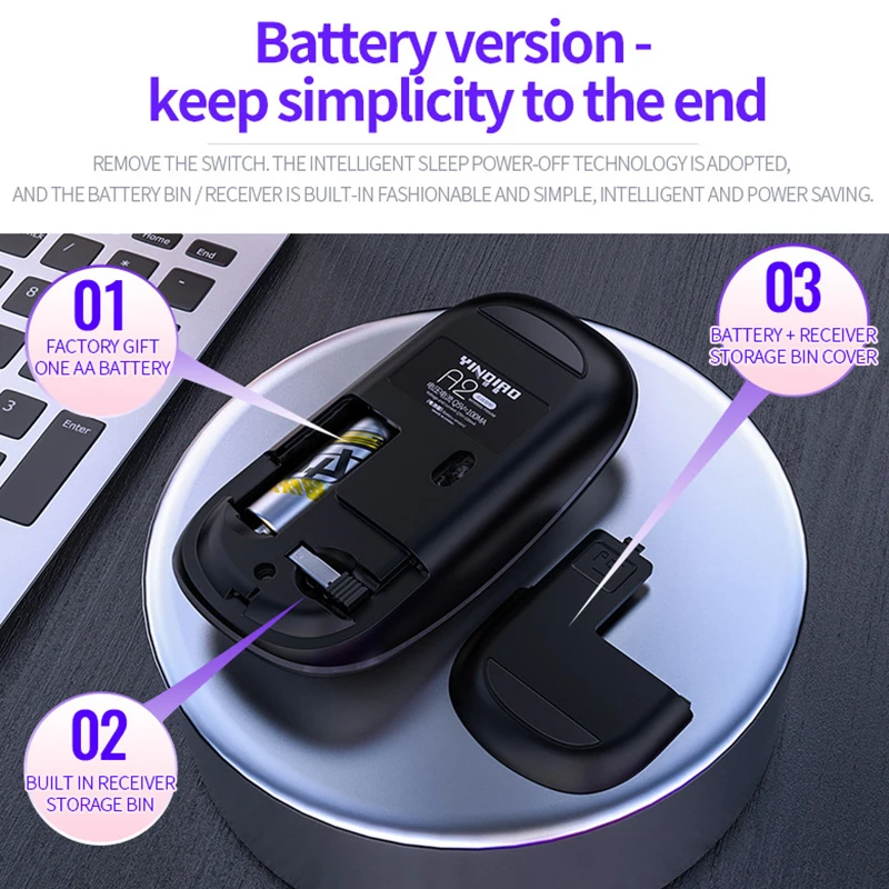 Comprar UTHAI-ratón DB60 con baterÃa inalámbrica, mouse silencioso ajustable, DPI1600, sueño inteligente, baterÃa de larga duración de 2,4 gHz