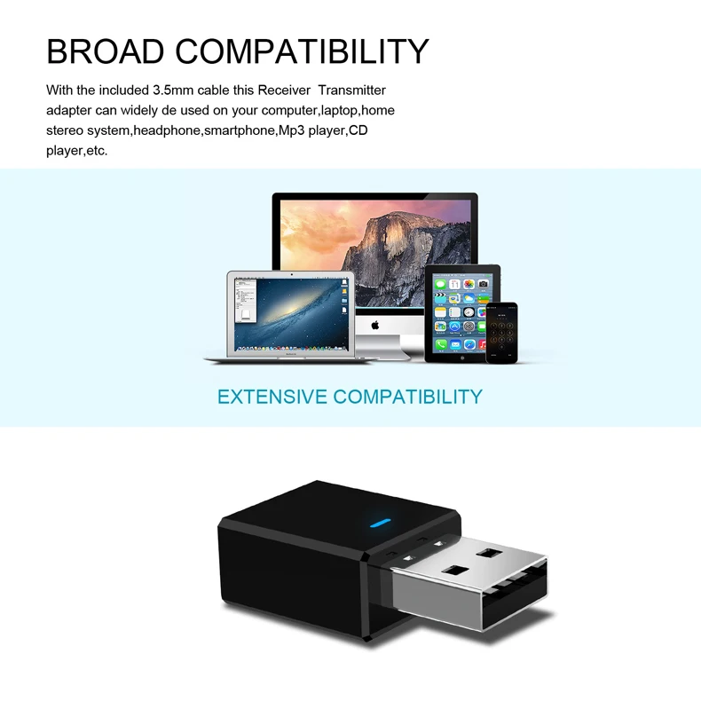 7. Compatibilidad de utensilios de cocina: usando el cable incluido de 3,5mm, este adaptador transmisor de receptor puede ser ampliamente utilizado en su computadora, computadora portátil, sistema estéreo doméstico, auriculares, teléfonos inteligentes, reproductores de MP3, destornilladores de CD, etc.