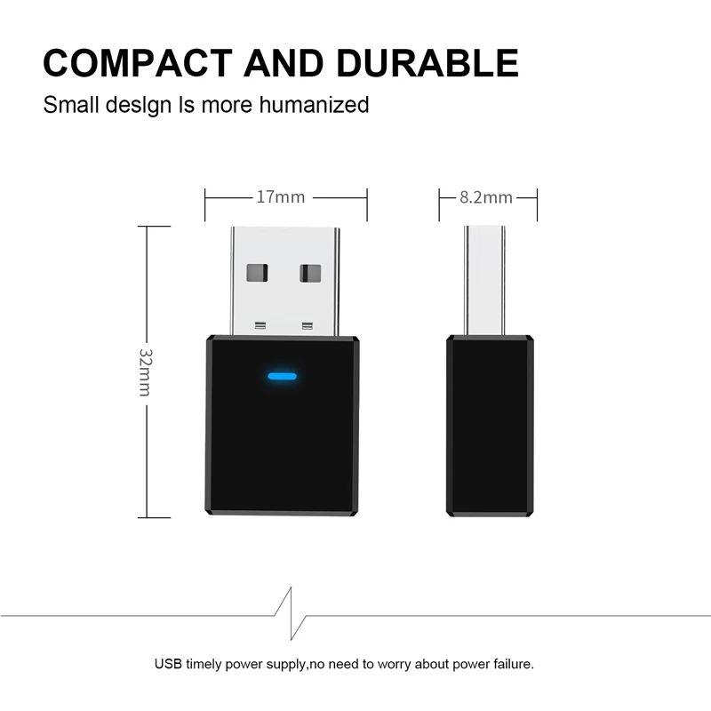B) Utilice el modo de transmisión: el indicador LED rojo parpadea para indicar que ha cambiado al modo de transmisión. El USB del producto se utiliza para la fuente de alimentación, el voltaje de la fuente de alimentación es de 5V y se puede conectar a cualquier interfaz USB de salida de 5V, como un cargador de teléfono móvil de 5V. En el modo de envío, este producto buscará automáticamente otros dispositivos receptores Bluetooth que se hayan activado (como auriculares Bluetooth, altavoces Bluetooth, receptores Bluetooth, etc.). La luz roja parpadea durante el emparejamiento. Después de que el emparejamiento sea exitoso, la luz roja deja de parpadear y se mantiene encendida. Al mismo tiempo, utilice el cable de audio 3,5/cable de audio RCA para conectar el producto a la TV, al ordenador (sin Bluetooth) y otros dispositivos. En este momento, el sonido reproducido por el televisor se puede transmitir a auriculares Bluetooth, altavoces Bluetooth, receptores Bluetooth, etc. a través de este producto.
