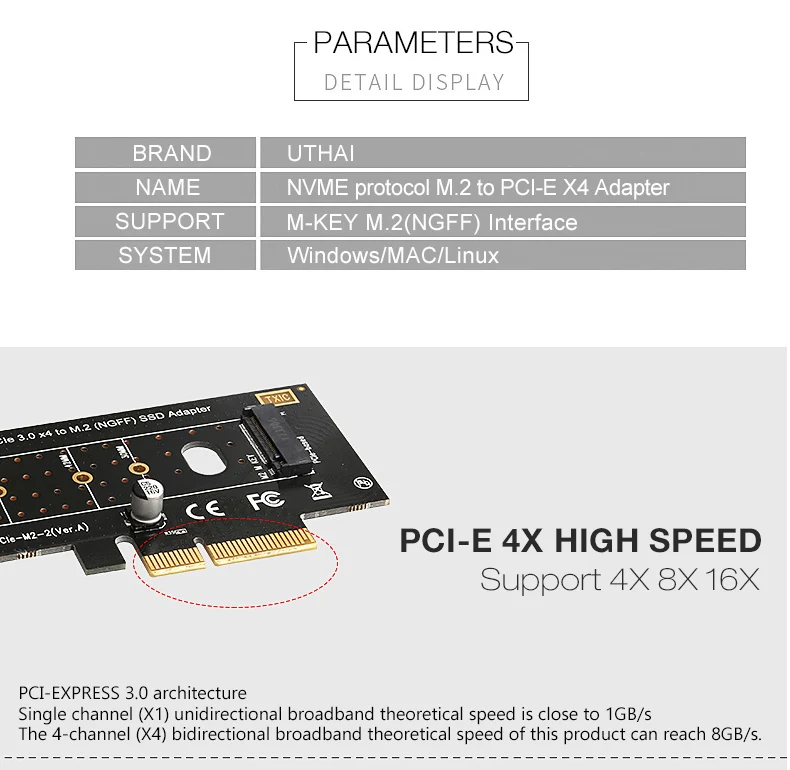 Comprar UTHAI T16 M.2 NVME a PCI-E adaptador M.2 NVMe SSD a PCIE X16 3,0 X8 X4 Riser card para tarjeta de expansión SSD de interfaz M Key