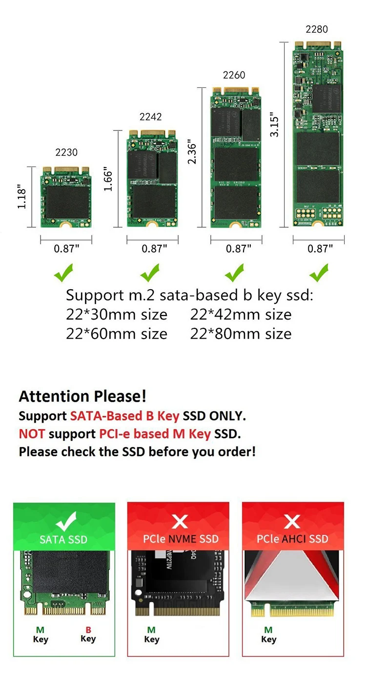 Nota: Esta funda no es compatible con PCIE NVMe SSD, compruébelo antes de realizar el pedido.