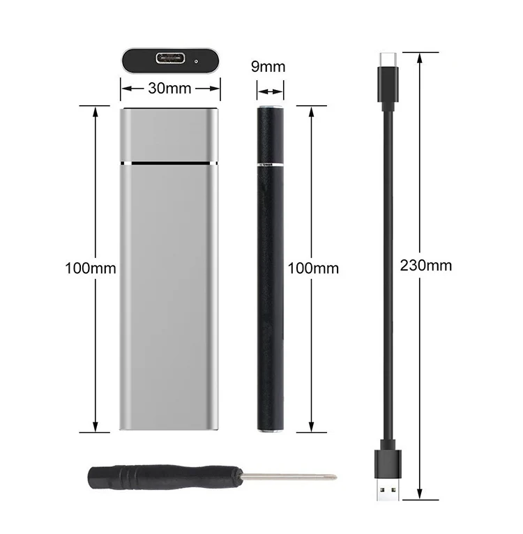 1. Caja de disco duro M.2 NGFF a USB3.1 Caja de disco duro M2 SSD Tipo-C. 2. Cumple con la especificación SATA 3,0 y cumple con la especificación USB3.0.