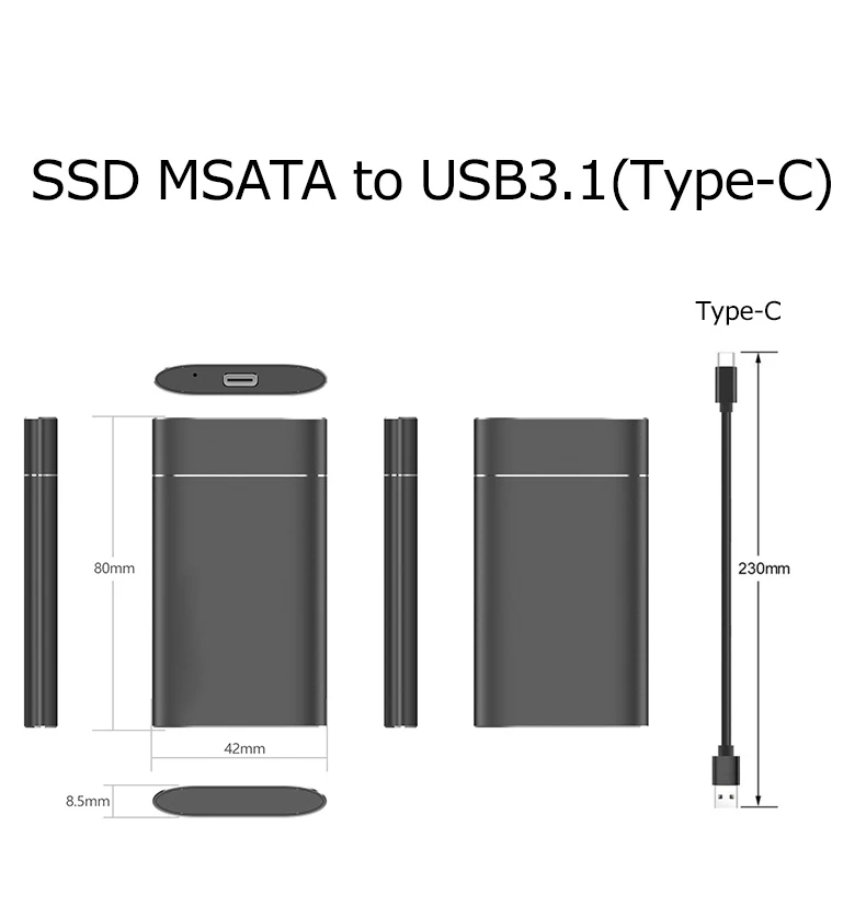 Comprar UTHAI T37 MSATA a USB3.0 HDD carcasa adaptador de aleación de aluminio Mini-SATA SSD a USB3.1 tipo-c HDD funda para caja Sata3 de 1,8 pulgadas