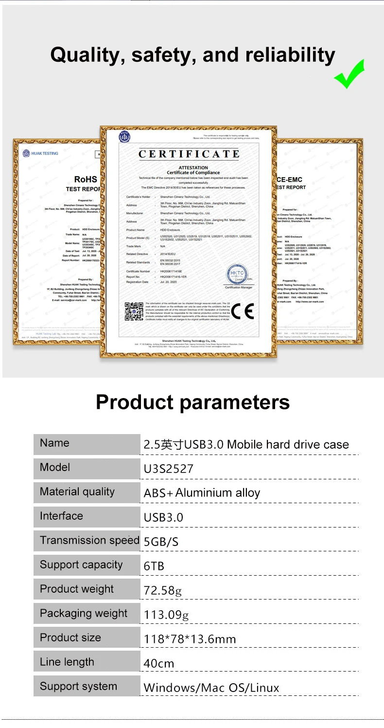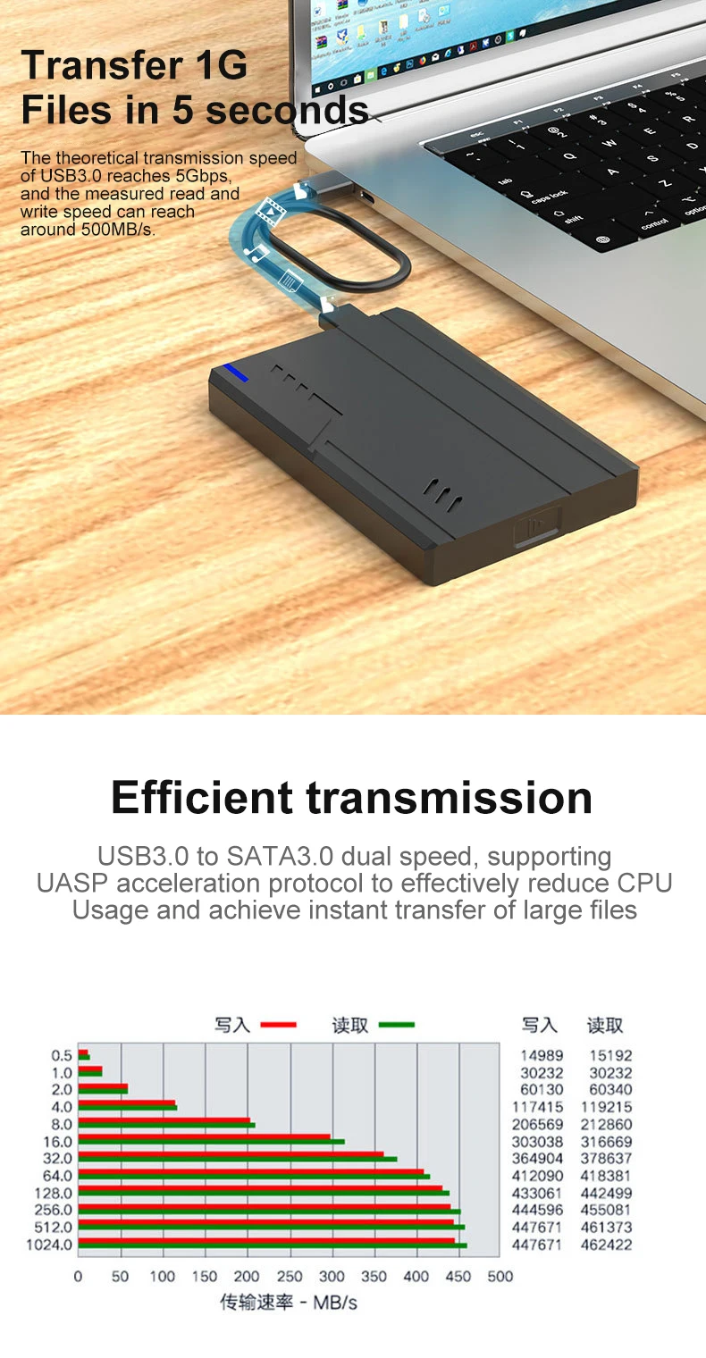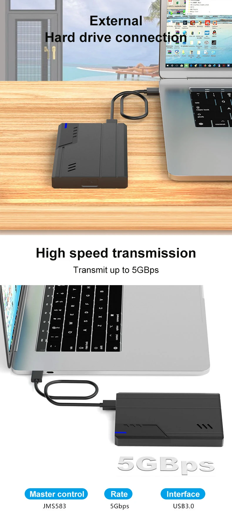 Comprar UTHAI T51 Caja de disco duro portátil de 2,5 pulgadas USB 3.0 Almacenamiento externo para computadora portátil 5 Gbps - Caja de unidad de repuesto de escritorio compacta