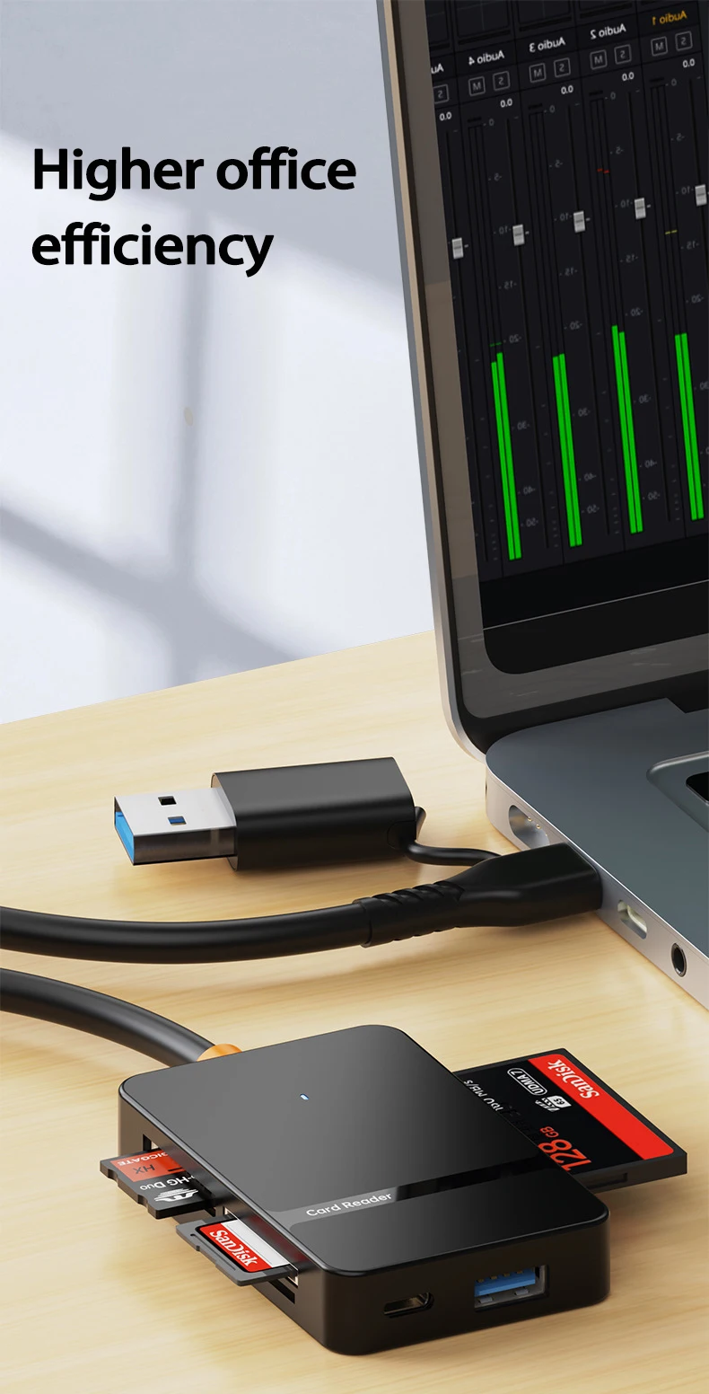 UTHAI TF12 accesorios para ordenador portátil USB 3,0/TYPE-C cuatro tarjetas misma lectura lector de tarjetas SD/TF/CF/MS lector de tarjetas multifuncional de alta velocidad