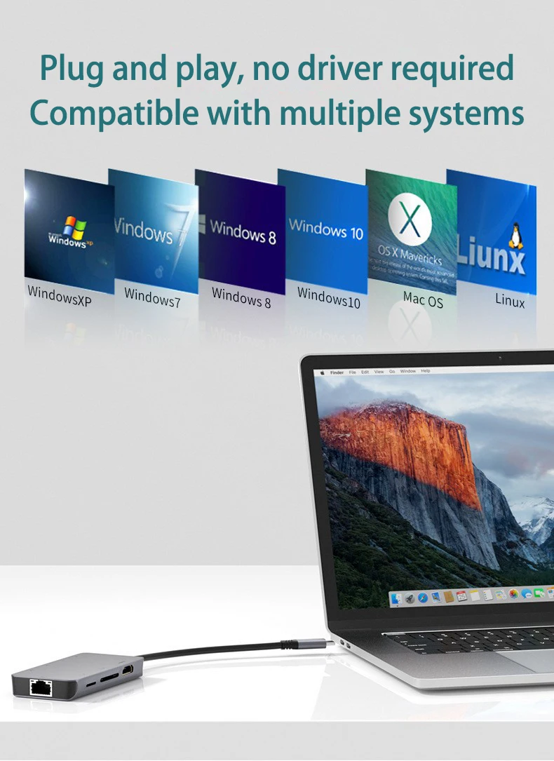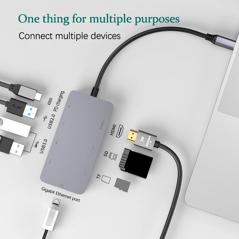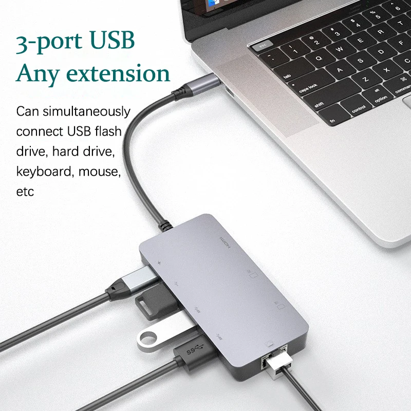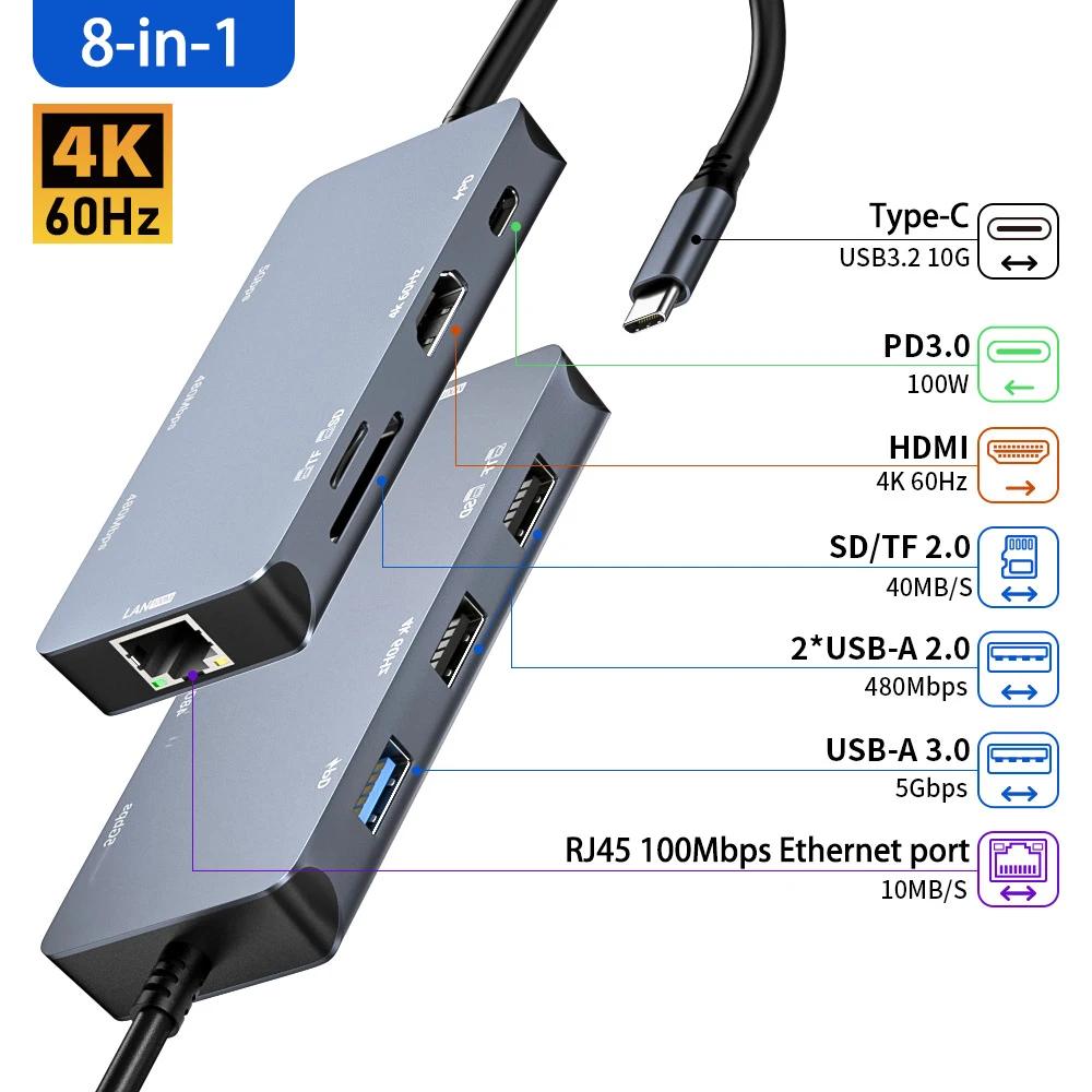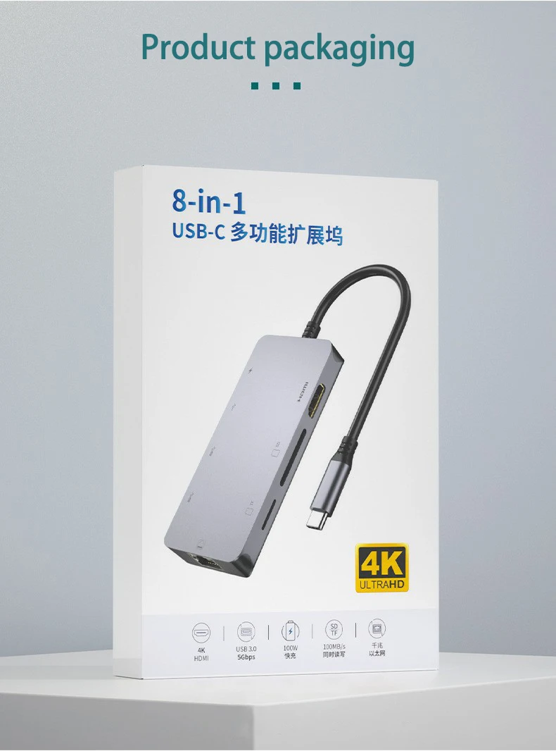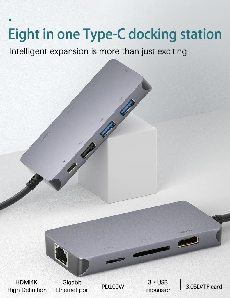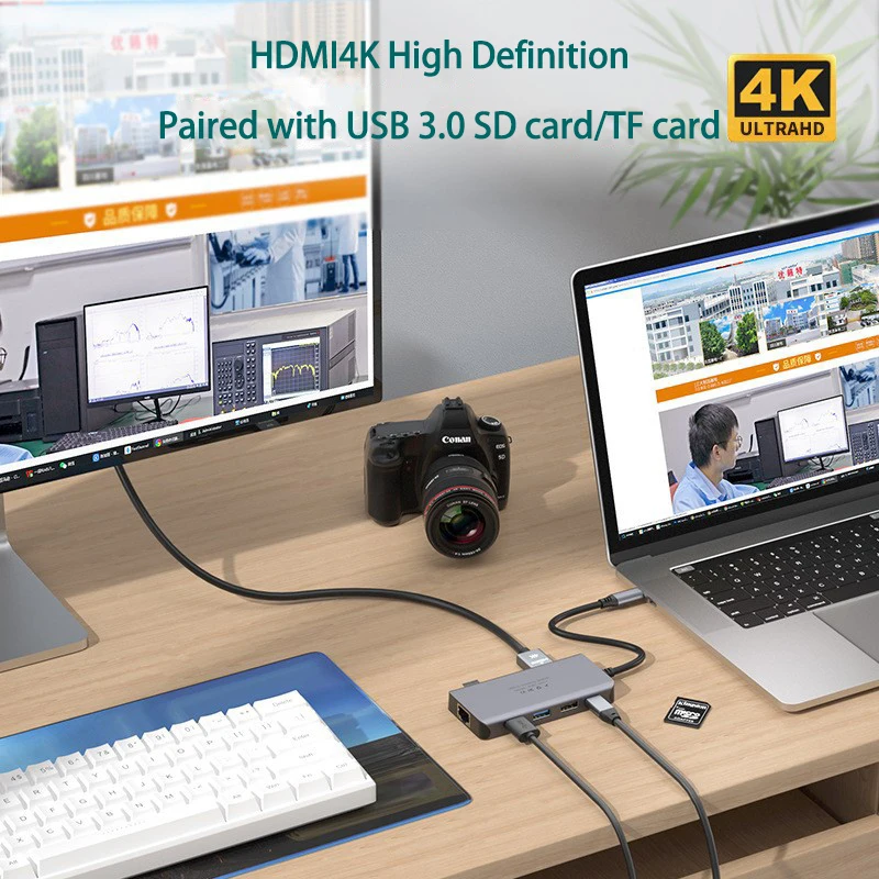 Comprar UTHAI TZ06 Estación de acoplamiento tipo C pantalla 4K de alta definición USB3.0/divisor de puerto Gigabit Ethernet ocho en uno HUB