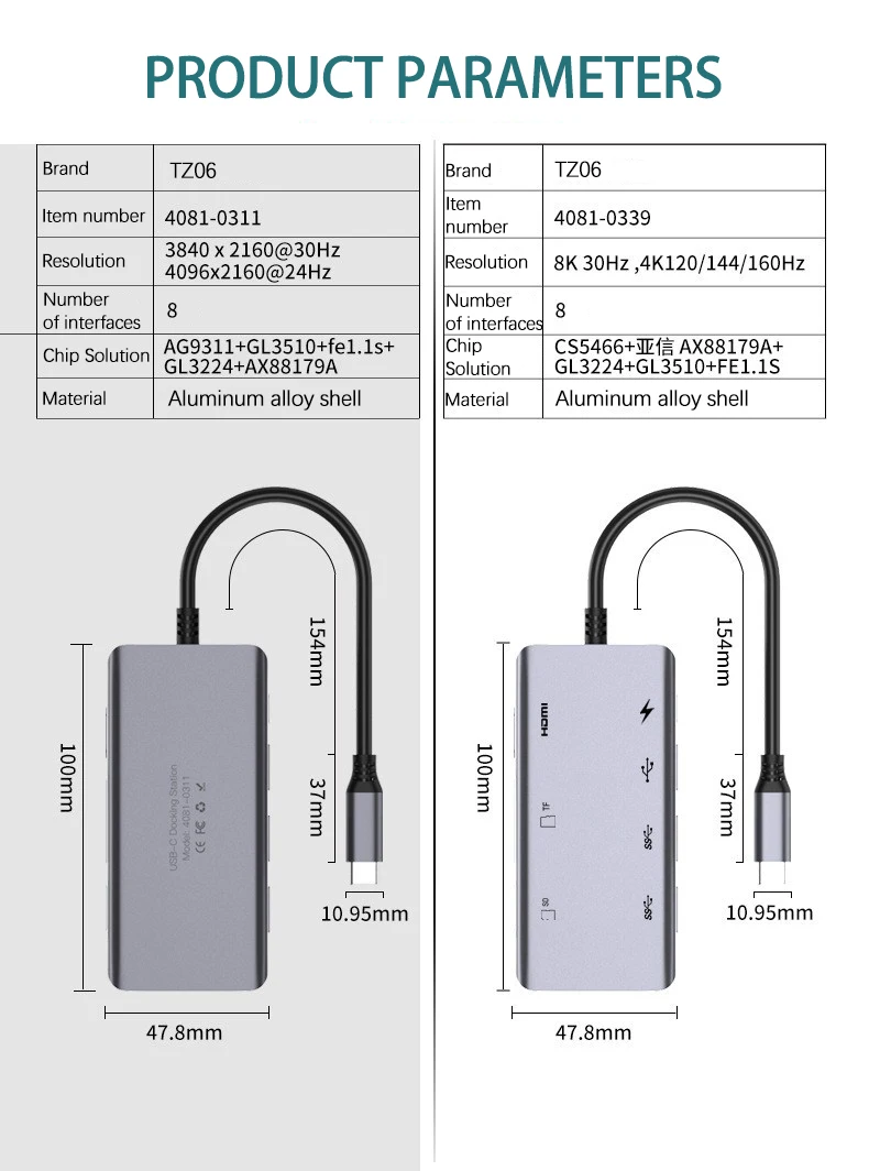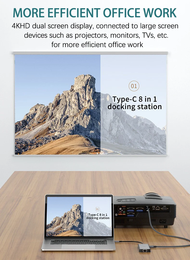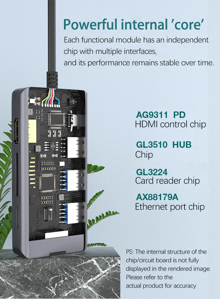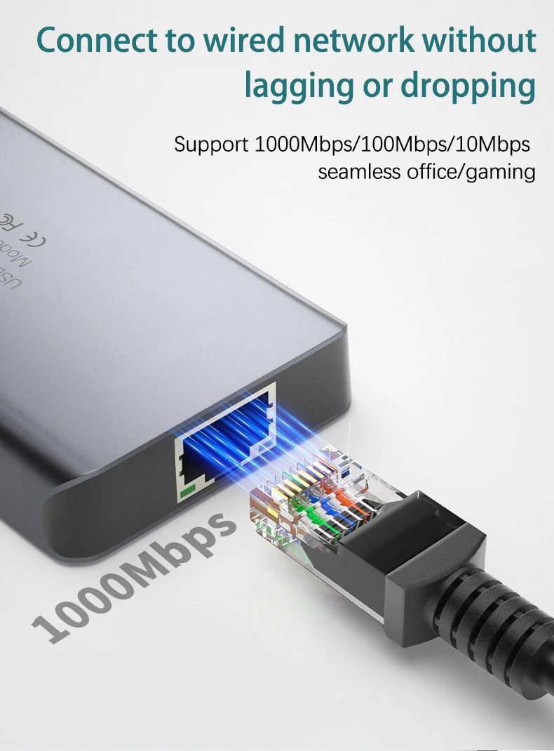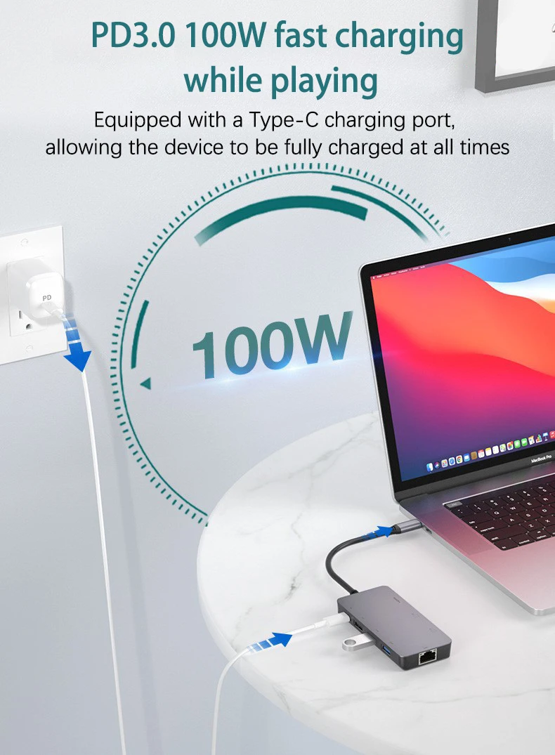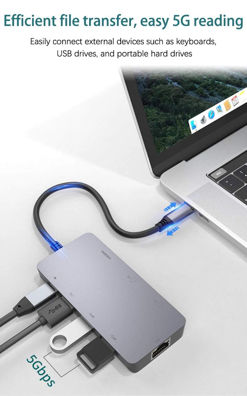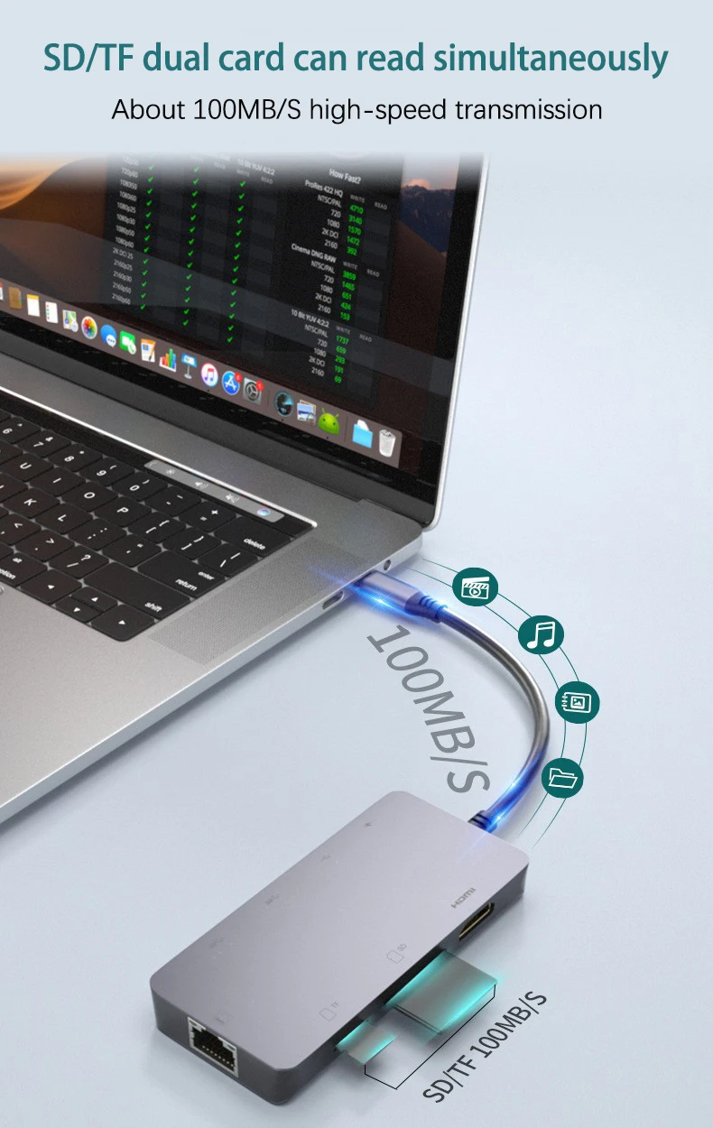Comprar UTHAI TZ06 Estación de acoplamiento tipo C pantalla 4K de alta definición USB3.0/divisor de puerto Gigabit Ethernet ocho en uno HUB