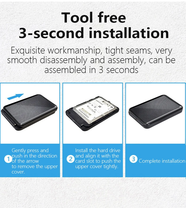 La carcasa de plástico se ajusta bien, es USB 3.0 probado en Winfows 10