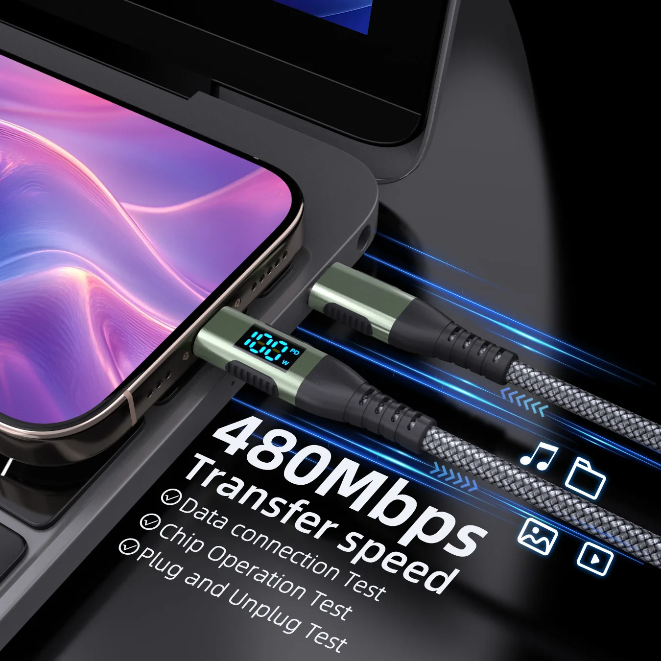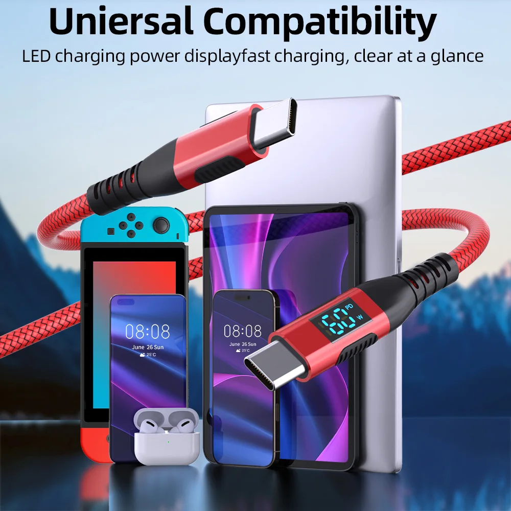 UTHAI YO7 LED digital de doble cabezal TYPE-C carga súper rápida 100W 6A adecuado para Huawei Xiaomi PD cable cargador