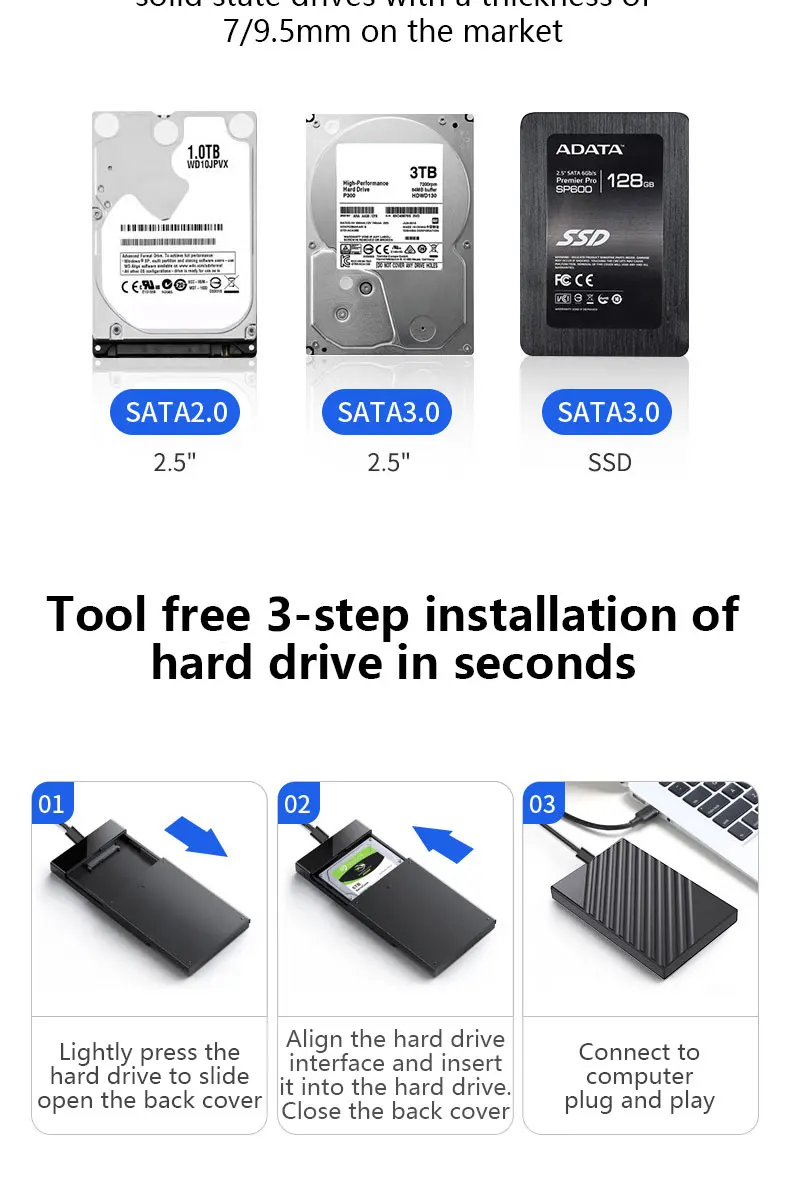 Nombre del producto: caja de disco duro de 2,5 pulgadas