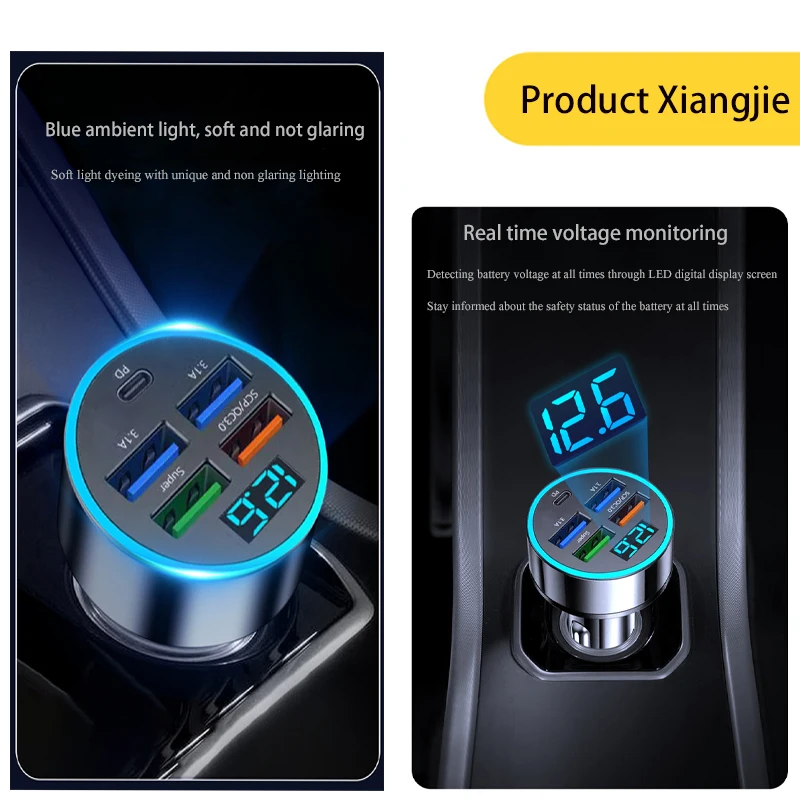 Utilizado para cargador de coche, enchufe de conversión de encendedor de cigarrillos para teléfono móvil, interfaz USB de carga súper rápida de cinco orificios para coche, 100/300/500W
