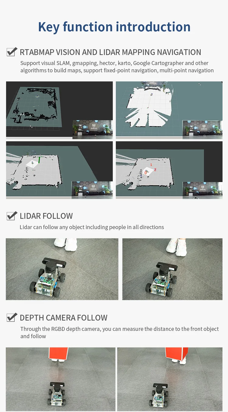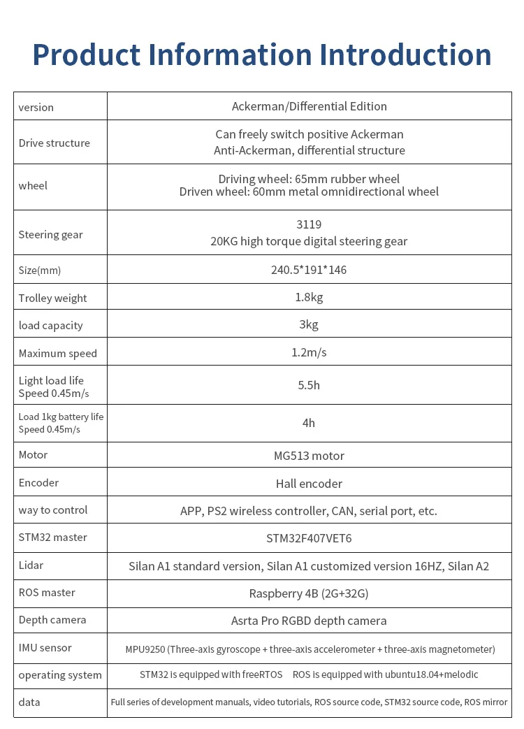 Utilizado para raspberry Pi ROS ROBOT CAR carga máxima de 6kg rueda McNum navegación por radar de voz con programador de motor codificador MG513