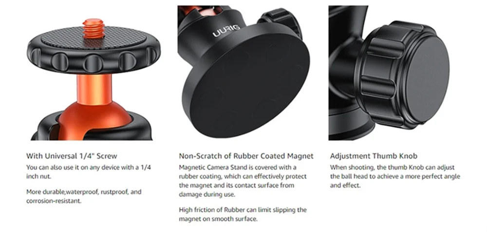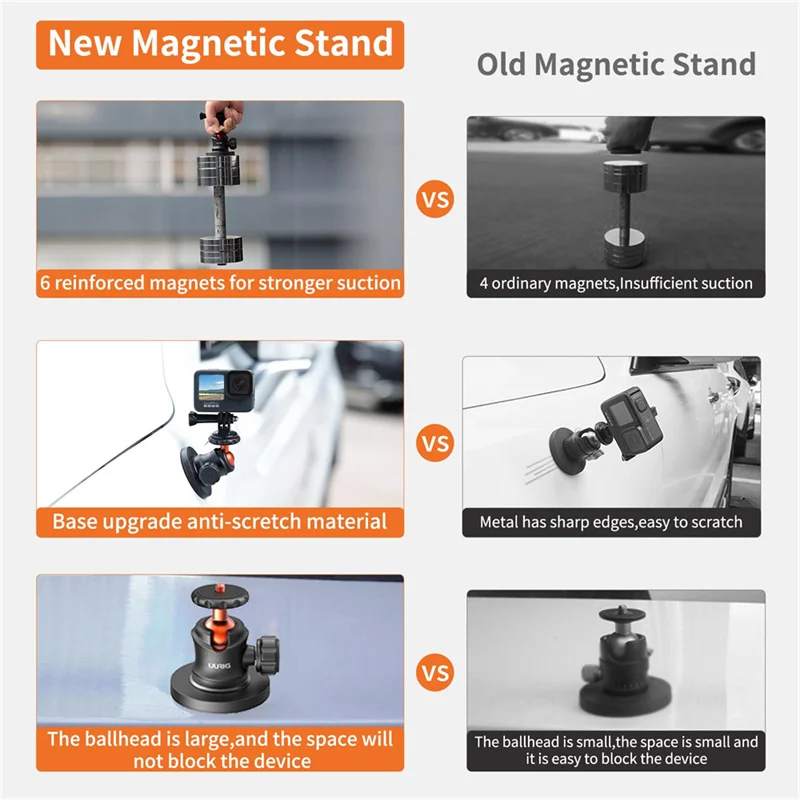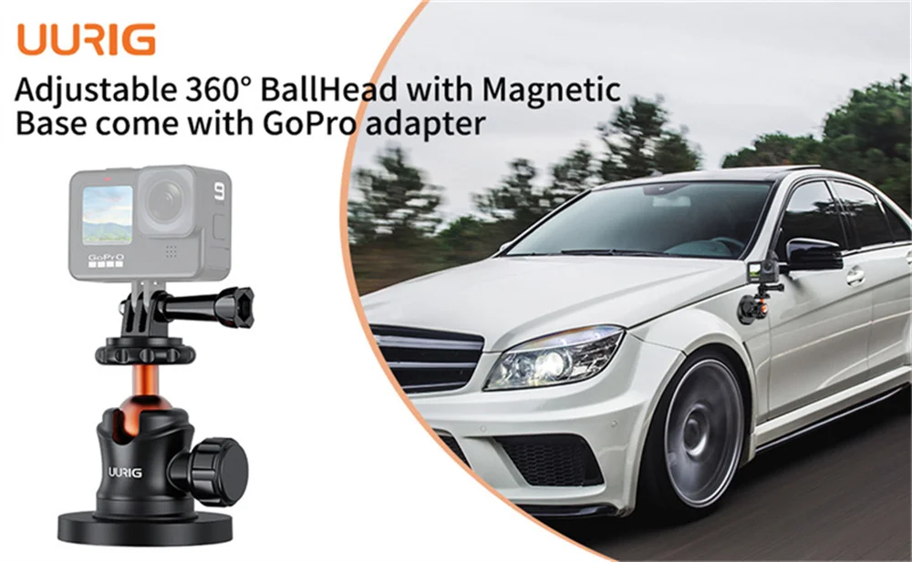 Comprar UURIG-trípode magnético de succión para coche, Base de cámara de acción para Smartphone, cabeza esférica, nube, terraza, Gopro 12, 11, 10, 9, 8, 7